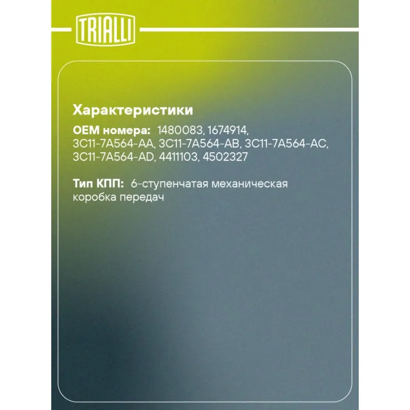 | Количество на автомобиль | 1 |