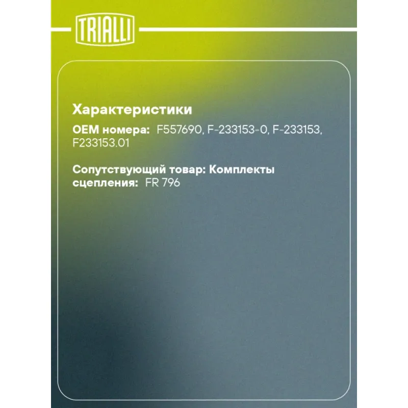 | Сопутствующий товар: Комплекты сцепления | FR 796 |