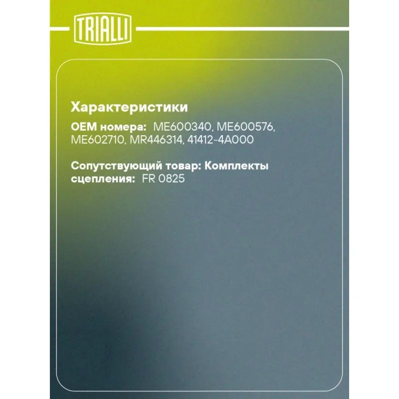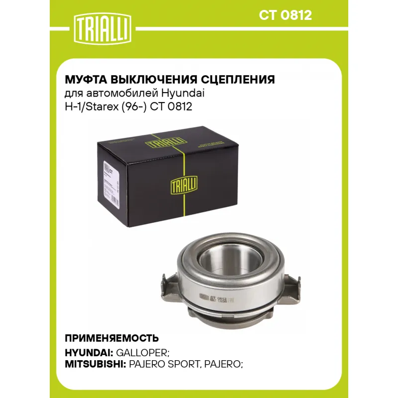 Муфта выключения сцепления для автомобилей Hyundai H-1/Starex (96-) Характеристики: Артикул: CT 0812 OEM номера: ME600340, ME600576, ME602710, MR446314, 41412-4A000 Тип привода: механический Гарантийный срок: 1 год/30 000 км Сопутствующий товар: Муфты сцепления: Комбинированный (алюминий, сталь, пластмасса (полиамид), вулканизированная резина (EPDM, NBR)) Количество на автомобиль: 1 Сопутствующие товары:: комплекты сцеплений Товарная линейка: BLACK Комплектация: Муфта выключения сцепления в сборе - 1 шт Гарантия: от 1 года.