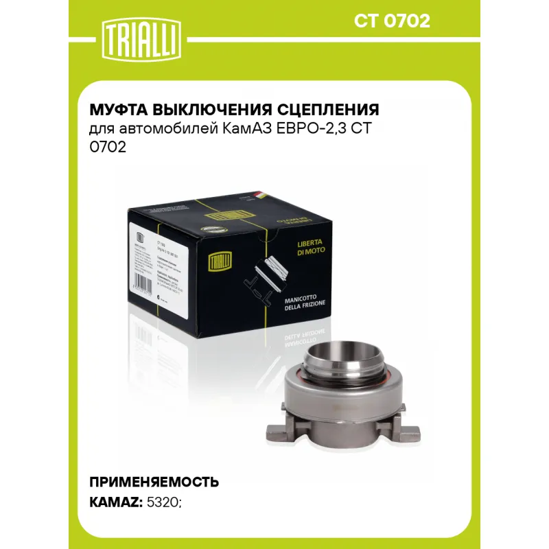 Муфта выключения сцепления для автомобилей КамАЗ ЕВРО-2,3 Характеристики: Артикул: CT 0702 OEM номера: 1664358, 1368693, 7C46 7548 BA, 109 820 1190, 36.30550.0003, 8.383.341.000, 8.383.337.000, 003 250 68 15, 002 250 88 15, 003 250 15 15, A 003 250 68 15, A 002 250 88 15, A 003 250 15 15, 001 250 96 15, 002 250 45 15, A 002 250 45 15, A 001 250 96 15, A 001 250 18 15, 001 250 18 15, 5010 556 025, 110.100.42, 41420-8D200, 57RS306250M, 20330503, T 163 059, 31230-E0010A, 31230-E0010, 5801273688, 0421.510.00, 632 101 680, 3151 000 157, 1096 8918, 53RS400004, 53RS400004M, 31230-0024A, 5006000575, 0422 6857, 12501815, 12509615, 22504515, 22508815, 32501515, 32506815 Тип КПП: КПП ZF-9S-1310/ZF-Ecomit 9S-109 Тип привода: механический Сопутствующий товар: Муфты сцепления: Комбинированный (алюминий, сталь, пластмасса (полиамид), вулканизированная резина (EPDM, NBR)) Количество на автомобиль: 1 Особенности конструкции:: дв. 740.31, Cummins 6ISBe 285 Гарантийный срок: 12 месяцев без ограничения по пробегу Товарная линейка: BLACK Подходит для авто: КамаАЗ 5320 Для проверки применяемости отправьте VIN автомобиля через вкладку "Есть вопросы о товаре?" Комплектация: Муфта выключения сцепления в сборе - 1 шт Гарантия: от 1 года.