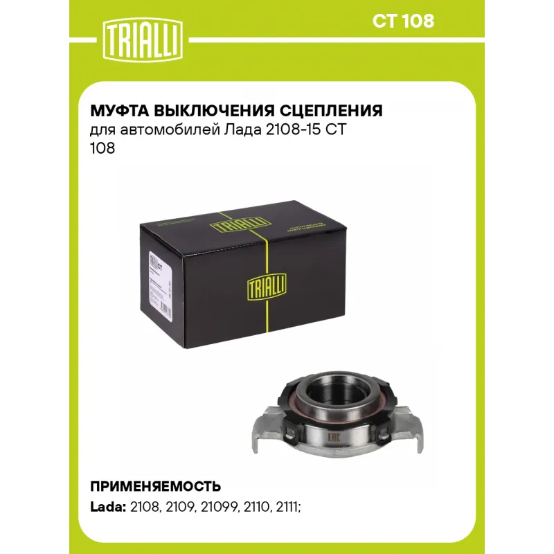 Муфта выключения сцепления для автомобилей Лада 2108-15 Характеристики: Артикул: CT 108 OEM номера: 2108-1601180, 2108-0160118-200, 2108-0160118-255, 2109-0160118-200, 21080-1601180-00 Тип привода: механический Сопутствующий товар: Муфты сцепления: Комбинированный (алюминий, сталь, пластмасса (полиамид), вулканизированная резина (EPDM, NBR)) Количество на автомобиль: 1 Гарантийный срок: 1 год/30 000 км Товарная линейка: BLACK Подходит для авто: ВАЗ 2108, 2108, 2109, 2109, 21099, 21099, 21099, 2110, 2110, 2111, 2111, 2112, 2112, 2113, 2114, 2115, Kalina (04-), Kalina (04-), Priora (07-), Granta (10-), 2108, 2108, 2109, 2109, 21099, 21099, 2110, 2111, 2112, 2113, 2114, 2115, Kalina (04-), Kalina (04-), Priora (07-), Priora (07-), Granta (10-) Для проверки применяемости отправьте VIN автомобиля через вкладку "Есть вопросы о товаре?" Комплектация: Муфта выключения сцепления в сборе - 1 шт Гарантия: от 1 года.