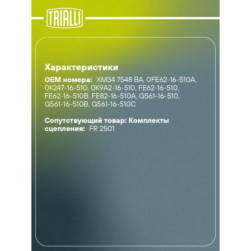 | Сопутствующий товар: Комплекты сцепления | FR 2501 |