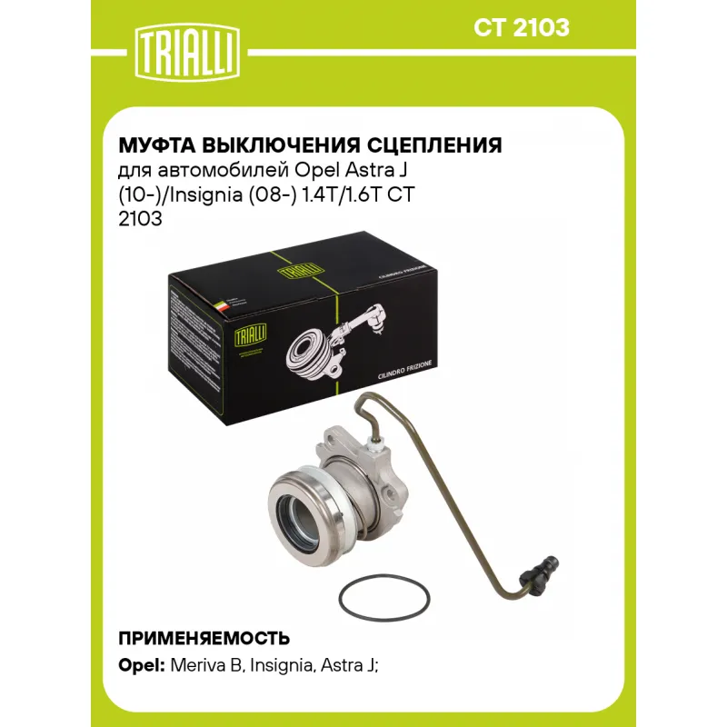 Муфта выключения сцепления для автомобилей Opel Astra J (10-)/Insignia (08-) 1.4T/1.6T Характеристики: Артикул: CT 2103 OEM номера: 55583074, 55197680, 55558917, 55558918, 55352048, 55563511, 55563645, 55563646, 5679360, 6 79 078, 6 79 079, 56 79 350 Тип привода: гидравлический Гарантийный срок: 1 год/30 000 км Количество на автомобиль: 1 Сопутствующий товар: Комплекты сцепления: FR 2110 Товарная линейка: BLACK Подходит для авто: Opel Meriva B (10-), Insignia (08-), Astra J (10-), Insignia (08-) Для проверки применяемости отправьте VIN автомобиля через вкладку "Есть вопросы о товаре?" Комплектация: Муфта выключения сцепления в сборе (гидравлическая) - 1 шт Гарантия: от 1 года.