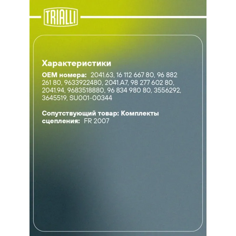 | Сопутствующий товар: Комплекты сцепления | FR 2007 |