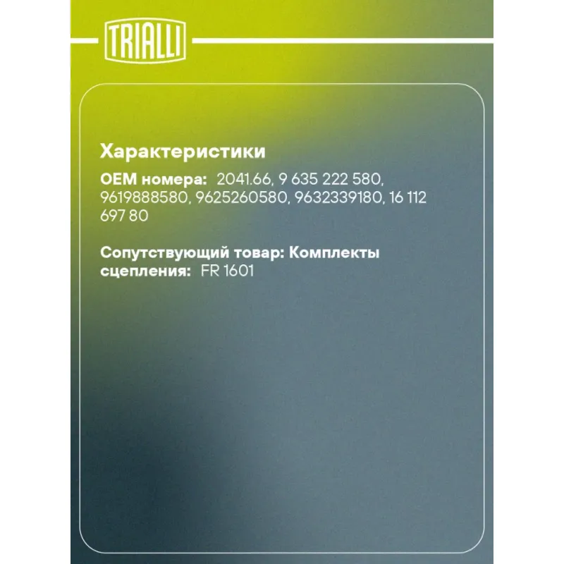 | Сопутствующий товар: Комплекты сцепления | FR 1601 |