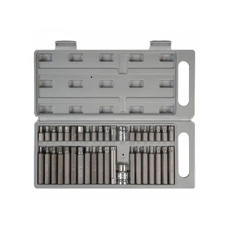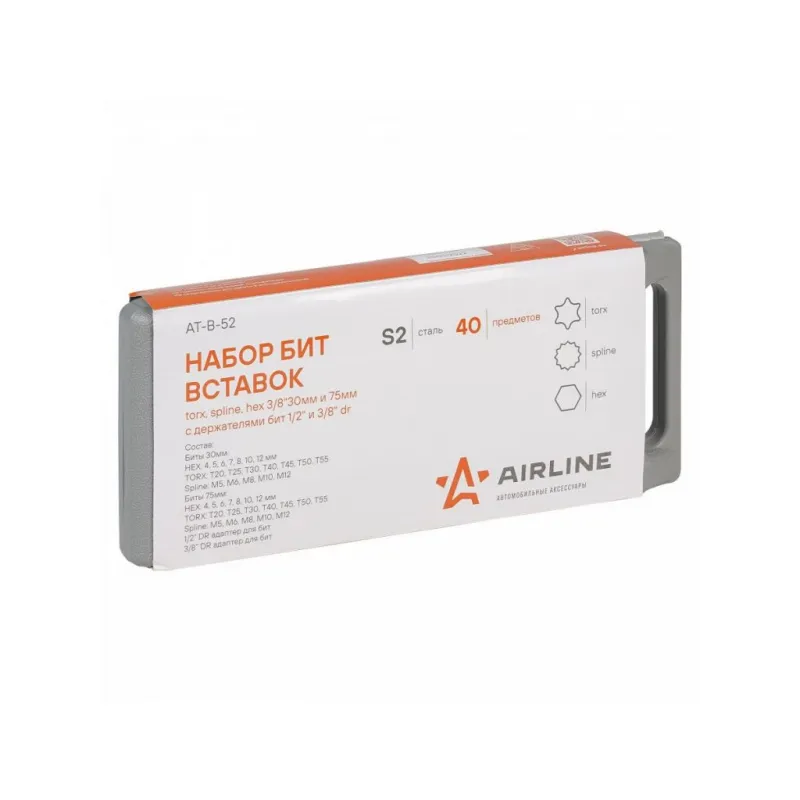 Набор бит вставок TORX, SPLINE, HEX 3/8" 30мм и 75мм с держателями бит 1/2" и 3/8" DR 40 предметов в кейсе Описание: Набор бит вставок TORX, SPLINE, HEX 3/8" 30мм и 75мм с держателями бит 1/2" и 3/8" DR 40 предметов в кейсе AIRLINE AT-B-52 - универсальный набор инструментов для работы с резьбовыми соединениями с различным шлицем. Биты вставки изготовлена из специальной стали CR-V, что придаёт им высокую прочность и долговечность. Размер Биты 30мм: HEX: 4, 5, 6, 7, 8, 10, 12 mm TORX: Т20, Т25, Т30, Т40, Т45, Т50, Т55 Spline: М5, М6, М8, М10, М12 Биты 75мм: HEX: 4, 5, 6, 7, 8, 10, 12 mm TORX: Т20, Т25, Т30, Т40, Т45, Т50, Т55 mm Spline: М5, М6, М8, М10, М12 1/2” DR адаптер для бит 3/8” DR адаптер для бит; В комплекте пластиковый кейс, удобном для хранения и транспортировки; Для шуруповерта, для дрели; Для монтажа, Для сборки, Универсальный; Высокая эффективность при завинчивании или отвинчивании; Разнообразие бит позволит выполнить множество работ в специализированных механических и автосервисах. Набор бит идеально подойдет в набор инструментов идеален для подарка мужу, дедушке, мужчине, автомобилисту, на день рождения, новый год, 23 февраля и без повода. Характеристики: Артикул: AT-B-52 OEM номера: 626940, 40640, S29H4140S, 953240 Размер: Биты 30мм: HEX: 4, 5, 6, 7, 8, 10, 12 mm TORX: Т20, Т25, Т30, Т40, Т45, Т50, Т55 Spline: М5, М6, М8, М10, М12 Биты 75мм: HEX: 4, 5, 6, 7, 8, 10, 12 mm TORX: Т20, Т25, Т30, Т40, Т45, Т50, Т55 mm Spline: М5, М6, М8, М10, М12 1/2” DR адаптер для бит 3/8” DR адаптер для бит Комплектация: Биты 30мм (по 1 шт.): HEX: 4, 5, 6, 7, 8, 10, 12 mm TORX: Т20, Т25, Т30, Т40, Т45, Т50, Т55 Spline: М5, М6, М8, М10, М12 Биты 75мм (по 1 шт.): HEX: 4, 5, 6, 7, 8, 10, 12 mm TORX: Т20, Т25, Т30, Т40, Т45, Т50, Т55 mm Spline: М5, М6, М8, М10, М12 1/2” DR адаптер для бит 3/8” DR адаптер для бит Пластиковый кейс Гарантия: от 1 года.