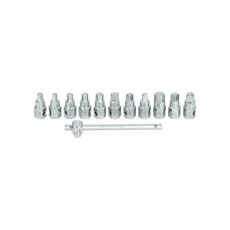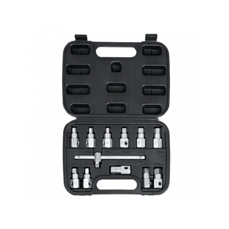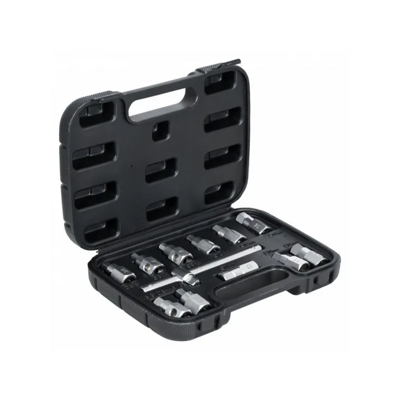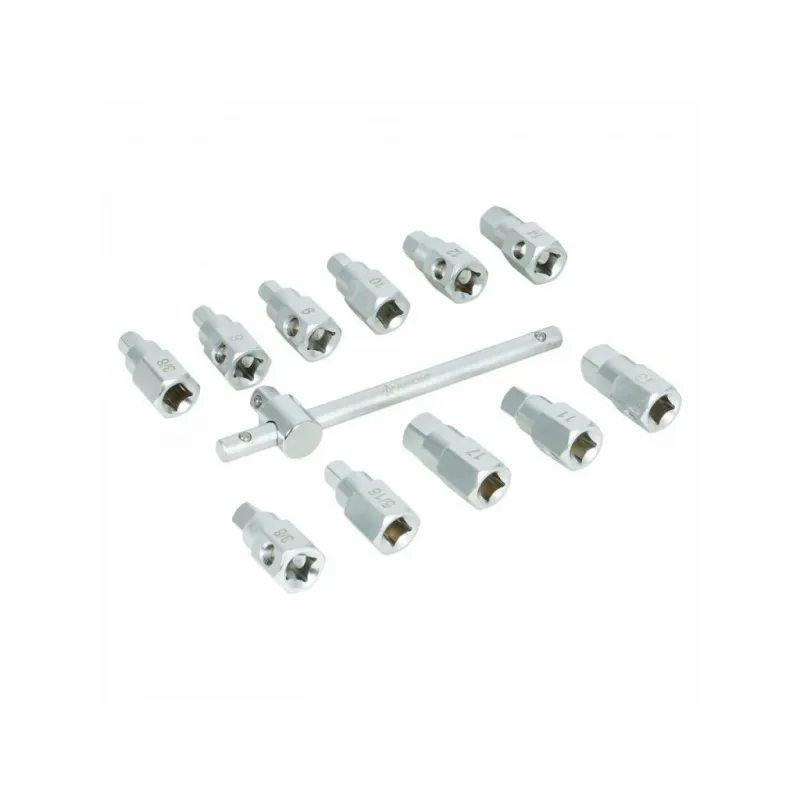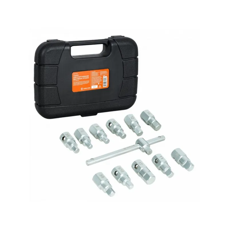 Набор для откручивания масляных пробок 12пр. Описание: Набор для откручивания масляных пробок, 12 предметов мспользуется для демонтажа сливных пробок картера двигателя, КПП и других технических узлов автомобиля. Подходит для работы с пробками различных размеров и типов, включая повреждённые или прикипевшие резьбовые соединения. Изготовлен из прочной инструментальной стали, обеспечивающей долговечность и устойчивость к нагрузкам. Характеристики: Артикул: ASKF001 Размер присоединительного квадрата: 3/8 дюйм Материал изготовления: Углеродистая сталь Профиль: Шестигранный Головка шестигранная, размер мм: 8,9,10,12,14,17 Головка четырехгранная, размер мм: 8,11,13 Комплектация: Т-образная рукоятка с присоединительным квадратом 3/8 - 1 шт Головка шестигранная 8мм - 1 шт Головка шестигранная 9мм - 1 шт Головка шестигранная 10мм - 1 шт Головка шестигранная 12мм - 1 шт Головка шестигранная 14мм - 1 шт Головка шестигранная 17мм - 1 шт Головка четырехгранная 8мм - 1 шт Головка четырехгранная 11мм - 1 шт Головка четырехгранная 13мм - 1 шт Присоединительный шестигранник 3/8 - 1 шт Присоединительный квадрат 3/8 - 1 шт Гарантия: от 1 года.