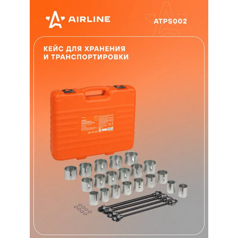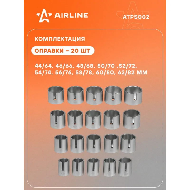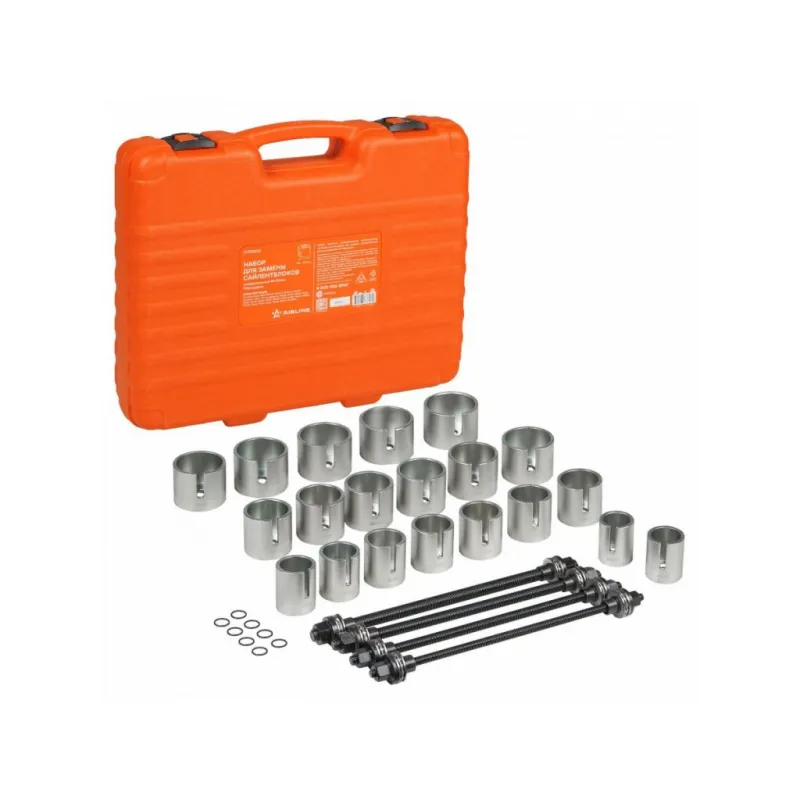 Набор для замены сайлентблоков универсальный 44-82мм 24пр. Описание: Набор является универсальным инструментом, который используется для замены сайлентблоков диаметром 44-82мм. 24 предмета. Cиловые болты 4шт: M10, M12, M14, M16. Оправки - 20шт. 44/64, 46/66, 48/68, 50/70 ,52/72, 54/74, 56/76, 58/78, 60/80, 62/82мм. Характеристики: Артикул: ATPS002 Размер, мм: 44 - 72 Комплектация: Оправки - 20 шт Силовые болты - 4 шт Кейс - 1 шт Гарантия: от 1 года.