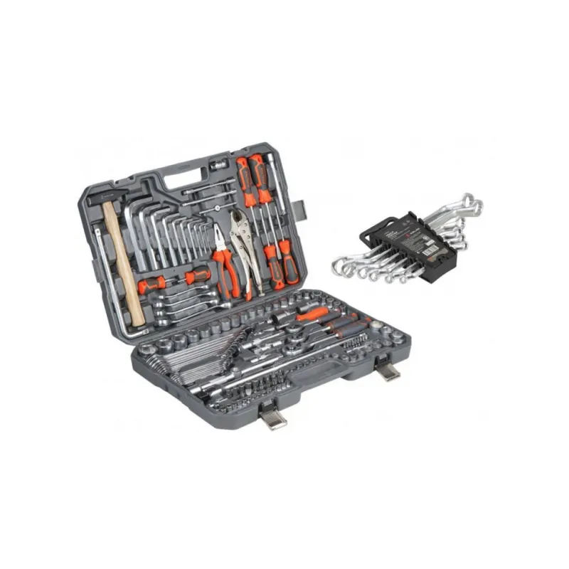 Набор инструментов 142пр. (головки 1/2", 1/4", 3/8") кейс + ключи накидн.дюйм. 6пр. (5/16"-15/16") Описание: Автомобильный набор инструментов от бренда AIRLINE разработан с учетом ваших потребностей, чтобы сделать процесс ремонта и обслуживания автомобиля максимально удобным и эффективным. Инструменты соответствуют самым высоким стандартам качества и могут быть использованы как в профессиональной сфере, так и в быту. Преимущества: • Многофункциональность: наш универсальный набор инструментов позволит вам решать широкий спектр задач — от замены шин до регулировки узлов и агрегатов. • Высокое качество: Инструменты изготовлены из высококачественной хромованадиевой и высокоуглеродистой стали. Металлические части изготовлены методом горячей ковки, что придаёт им высокую прочность и долговечность. • Финишное матовое хромирование с частичной полировкой защищает от воздействия коррозии и делает его более износостойким. • Удобство использования: компактен и легко помещается в багажнике, не занимая много места. • Кейс для хранения дома, в гараже или для транспортировки. Вы всегда сможете взять его с собой в дорогу. • Эргономичный профиль рукояток приводов и воротков. Надежный трещоточный механизм на 72 зуба значительно повышает производительность труда и снижает нагрузки на организм. Продуманный профиль рабочей части торцевых головок смещает пятно контакта с ребра грани на её поверхность, что предотвращает повреждение болтов и гаек даже при самых высоких нагрузках. Материал: CrV50BV30, S2, для рукояток — бензо- и маслостойкий пластик и резина. Наш набор инструментов подходит для обслуживания и ремонта автомобилей, легких грузовиков, фургонов, мотоциклов, квадроциклов, внедорожников и некоторых видов спецтехники. Практичный и полезный подарок для каждого обладателя автомобиля. Наслаждайтесь комфортом и безопасностью на дороге! Характеристики: Артикул: AT142 Размер: Карданный шарнир 1/2" Головка торцевая TORX E10, E12, E14, E16, E20 Молоток 300гр Отвертка SL 6.5*38мм, 6.5*100мм, 8*150мм Отвертка PH PH2*38мм, PH2*100мм, PH3*150мм Ключ комбинированный 6, 7, 8, 9, 10, 11, 12, 13, 14, 15, 16, 17, 18, 19,21, 22, 24 мм 1/2" Биты 8мм H7, H8, H10, H12, H14, SL 8, SL 10, SL 12, PH 3, PH 4, PZ 3, PZ 4, TX 40, TX 45, TX 50, TX 55, TX 60 Головка торцевая 6гр. 8, 10, 11, 12, 13, 14, 15, 16, 17, 18, 19, 21, 22, 24, 27, 30, 32 Головка свечная 16мм, 21мм Трещёточная рукоятка 1/2", 72 зуба Вороток Г-образный 1/2" Держатель для бит 1/2" - 8мм Удлинитель 125мм, 250мм Адаптор для Т-образного воротка 1/2" 1/4" Головка торцевая 6гр. 4, 4.5, 5, 5.5, 6, 7, 8, 9, 10 Трещёточная рукоятка 1/4", 72 зуба Вороток Т-образный 1/4" Отвёрточная рукоятка 1/4" - 1/4" Удлинитель 50мм, 100мм, 150мм Головка торцевая TORX E4, E5, E6, E7, E8 Карданный шарнир 1/4" Удлинитель гибкий 145мм 3/8" Головка торцевая 6гр. 6, 7, 8, 9, 10, 11, 12, 13, 14, 15, 16, 17, 18, 19, 21, 22, 24 Удлинитель 75мм, 150мм Карданный шарнир 3/8" Трещёточная рукоятка 3/8", 72 зуба Г-образный шестигранный ключ 3, 4, 5, 6, 7, 8, 10, 12, 14, 17 мм Зажим ручной (Пинцы) 250мм Ключ разрезной 8*10, 11*13, 12*14, 17*19 мм Плоскогубцы комбинированные 180мм Вороток шарнирный с ручкой 1/2" - 480мм Комплектация: 1/4" Головка торцевая 6гр. 4, 4.5, 5, 5.5, 6, 7, 8, 9, 10 Трещёточная рукоятка 1/4", 72 зуба Вороток Т-образный 1/4" Отвёрточная рукоятка 1/4" - 1/4" Удлинитель 50мм, 100мм, 150мм Головка торцевая TORX E4, E5, E6, E7, E8 Карданный шарнир 1/4" Удлинитель гибкий 145мм 3/8" Головка торцевая 6гр. 6, 7, 8, 9, 10, 11, 12, 13, 14, 15, 16, 17, 18, 19, 21, 22, 24 Удлинитель 75мм, 150мм Карданный шарнир 3/8" Трещёточная рукоятка 3/8", 72 зуба 1/2" Биты 8мм H7, H8, H10, H12, H14, SL 8, SL 10, SL 12, PH 3, P