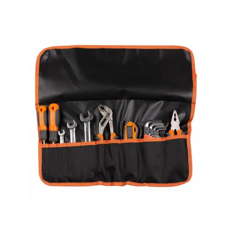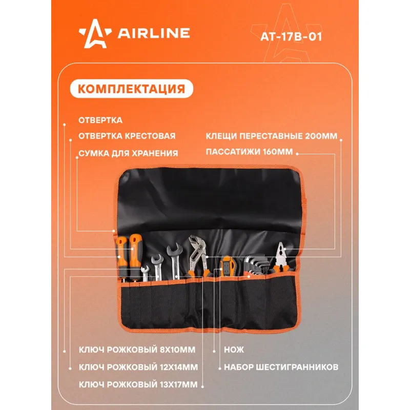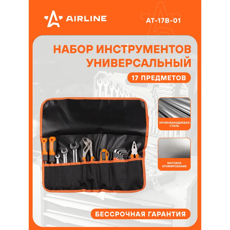 Набор инструментов 17пр., сумка Описание: Инструменты соответствуют высоким стандартам качества, поэтому подойдут как для использования на бытовом уровне, так и для применения в профессиональной сфере. Инструменты изготовлены из высококачественной хром-ванадиевой стали. Металлические части изготовлены методом горячей ковки, что придаёт им высокую прочность и долговечность. Финишное прочное хромированное покрытие защищает Инструмент от воздействия коррозии, делает его более износостойким и легко очищается от загрязнений. Финишная обработка двух типов (частичная полировка) головок придаёт им отличный внешний вид. Продуманный профиль рабочей части торцевых головок смещает пятно контакта с ребра грани на её поверхность, что предотвращает повреждение болтов и гаек даже при самых высоких нагрузках. Эргономичный профиль рукояток приводов и воротков позволяет развивать большее усилие без риска повреждения кистей рук. Материал: cталь CrV50BV30 Твёрдость: 45-48 HRC Покрытие: Матовое хромирование с частичной полировкой Характеристики: Артикул: AT-17B-01 OEM номера: 620943 Размер: Ключ шестигранный Г-образный с шаром 5мм Нож с выдвижным сменным лезвием 18мм Отвертка шлицевая с эргономичной рукояткой SL5.5*1.0*100мм Пассатижи 6" (160мм) Ключ шестигранный Г-образный с шаром 3мм Ключ шестигранный Г-образный с шаром 2,5мм Ключ шестигранный Г-образный с шаром 4мм Ключ рожковый 8х10мм Ключ шестигранный Г-образный с шаром 8мм Ключ рожковый 12х14мм Ключ шестигранный Г-образный с шаром 6мм Клещи переставные 8" (200мм) Отвертка крестовая с эргономичной рукояткой PH2*100мм Ключ шестигранный Г-образный с шаром 2мм Ключ шестигранный Г-образный с шаром 10мм Ключ шестигранный Г-образный с шаром 1,5мм Ключ рожковый 13х17мм Комплектация: Отвертка шлицевая с эргономичной рукояткой SL5.5*1.0*100мм - 1 шт Отвертка крестовая с эргономичной рукояткой PH2*100мм - 1 шт Пассатижи 6" (160мм) - 1 шт Клещи переставные 8" (200мм) - 1 шт Нож с выдвижным сменным лезвием 18мм - 1 шт Ключ рожковый 8х10мм - 1 шт Ключ рожковый 12х14мм - 1 шт Ключ рожковый 13х17мм - 1 шт Ключ шестигранный Г-образный с шаром 1,5мм - 1 шт Ключ шестигранный Г-образный с шаром 2мм - 1 шт Ключ шестигранный Г-образный с шаром 2,5мм - 1 шт Ключ шестигранный Г-образный с шаром 3мм - 1 шт Ключ шестигранный Г-образный с шаром 4мм - 1 шт Ключ шестигранный Г-образный с шаром 5мм - 1 шт Ключ шестигранный Г-образный с шаром 6мм - 1 шт Ключ шестигранный Г-образный с шаром 8мм - 1 шт Ключ шестигранный Г-образный с шаром 10мм - 1 шт Сумка - 1 шт Гарантия: от 1 года.