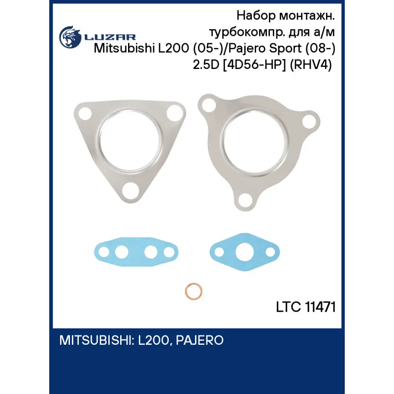 Набор монтажн. турбокомпр. для а/м Mitsubishi L200 (05-)/Pajero Sport (08-) 2.5D [4D56-HP] (RHV4) (прокл.) Характеристики: Артикул: LTC 11471 OEM номера: 1515A222, 1515A170 Количество на автомобиль: 1 Материал: Сталь, медь, безасбестовый картон Сопутствующий товар: Турбокомпрессор: LAT 1147 Сопутствующий товар: Актуатор: LTC 114... Читать полностью →