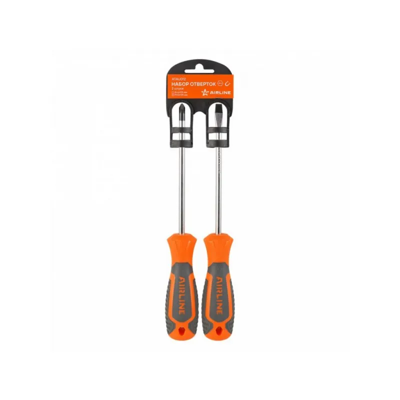 Набор отвёрток 2 пр. (SL6x125mm, PH2x125mm), пласт.подвес Описание: Набор отверток 2 шт крестовые и прямые AIRLINE ATAU012. Сочетание твёрдых и мягких элементов эргономичной рукоятки оптимально распределяет усилие, прилагаемое к инструменту, и предотвращает проскальзывание. Эргономичный дизайн облегчает работу. Отвёртки AIRLINE удобно подвешиваются за специальное отверстие. Лезвие отвёрток AIRLINE изготовлено из хром-ванадиевой стали, жало подвержено индукционной закалке и фосфатировано. - Магнитный наконечник; - Подойдут для дома, для гаража, для любых бытовых задач, многофункциональная, для ремонта, для сборки мебели, для автомобиля; - Размер отверток из набора: SL6, PH2; - Материал стержня - CRV; - Материал рукоятки - двухкомпонентная, прорезиненная; - Подвес инструмента; Товар официального производителя AIRLINE. Отлично подойдет в качестве практичного подарка мужчинам, женщинам, автомобилисту, папе, отцу, мужу, парню и другу на Новый год, день рождения и без повода, незаменимая вещь для дома, автосервиса, для профессионального использования. Характеристики: Артикул: ATAU012 Размер: SL6, PH2 Длина жала отвёртки, мм: 125, 150 Материал стержня: CRV Материал рукоятки: двухкомпонентная Комплектация: Отвёртка - 2 шт Гарантия: от 1 года.