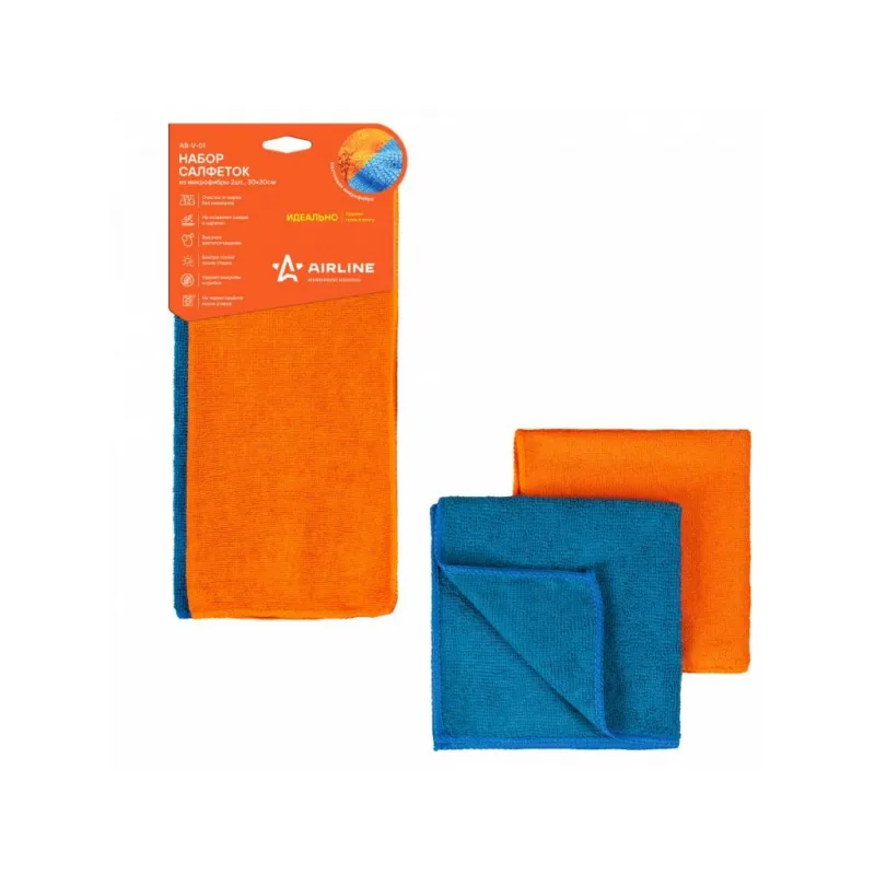 Набор салфеток из микрофибры, синяя и оранжевая (2 шт., 30*30 см) Описание: Салфетки для уборки авто из микрофибры, универсальные для всех видов поверхностей AIRLINE AB-V-01. Набор компактных салфеток размером 30*30 см поможет основательно упростить процесс уборки и значительно сократит время, затраченное на дезинфекцию поверхностей и панелей в доме или автомобиле. Состав из микрофибры наделяет салфетки рядом преимуществ, среди которых - повышенная влаговпитываемость, а также особое строение верхнего слоя изделия, которое не только устраняет грязь, но и полирует протираемую поверхность. Особая поверхность салфеток способна не только устранить загрязнения с плоскости, но и отполировать поверхность изделия. Безопасен для любых поверхностей: лакокрасочные покрытия, стекла, пластик, кожа и пр. Эффективно очищает от пятен и других загрязнений. - Состав: 80% полиэстер, 20% полиамид; - Можно использовать с влажными, сухими и моющим средствами; - Не повреждает лакокрасочное покрытие, подходит для полировки кузова, для стекол и зеркал; - Профессиональное удаление грязи, пятен и пыли; - Не оставляет царапин; - Не теряет свойств после стирки; - Быстро сохнет после стирки; - Высокое влагопоглощение; - Удаляет микробы и грибы; Набор салфеток автомобильных - отличный подарочный вариант в набор автомобилиста: мужчине и женщине, автолюбителю, папе, отцу, мужу, парню и другу, на любой праздник, Новый год и просто так, незаменимая вещь для дома, для ухода за автомобилем автосервиса, для профессионального использования. Товар официального производителя AIRLINE. В нашем магазине, вы найдете широкий ассортимент высококачественных автотоваров для автомобиля, автозапчастей, аксессуары для машины, аксессуары для тюнинга авто, отвертки для авто, инструменты для ремонта и строительства, незаменимый слесарный инструмент для авто и машины, набор инструментов, набор прямых и крестовых отверток. Характеристики: Артикул: AB-V-01 Материал: микрофибра Длина, см: 30 Ширина, см: 30 Плотность материала, г/м2: 250 Комплектация: Набор салфеток из микрофибры, синяя и оранжевая (2 шт., 30*30 см) в пакете с картонным навершием - 1 компл Гарантия: от 1 года.