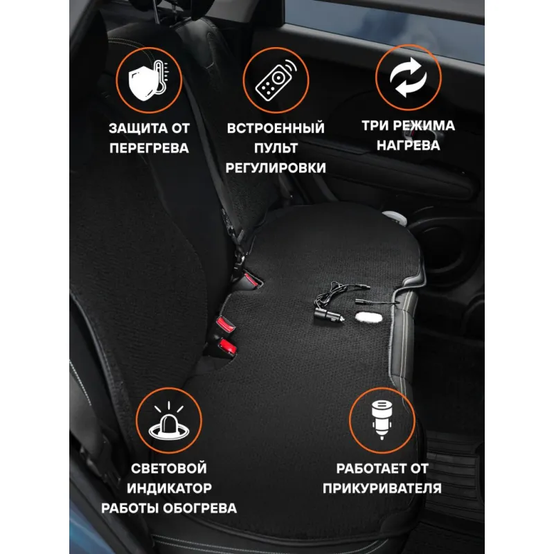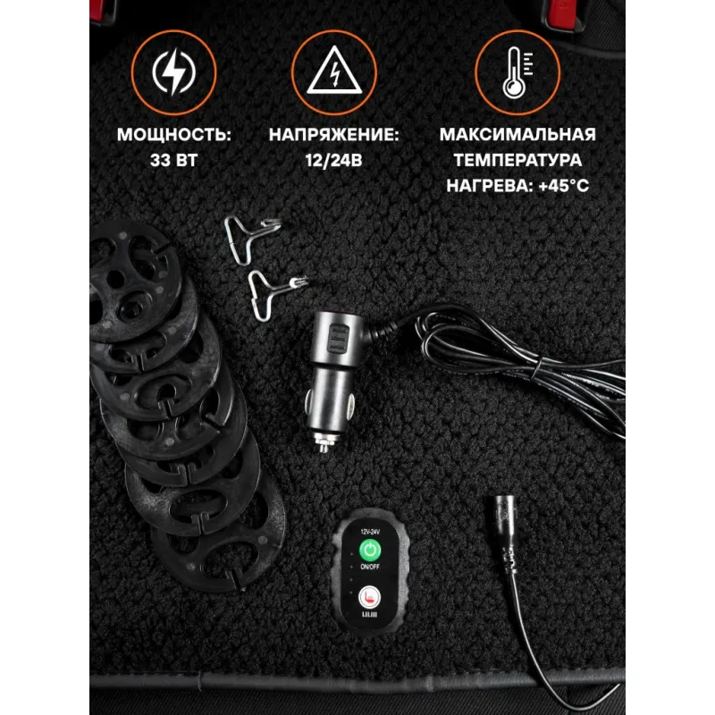 Накидка с подогревом на задн.сид. PRO, 12/24В, 33Вт,встр.пульт,искусст.мех/кожа,черн. Описание: Накидка на переднее пассажирское или водительское сиденье с подогревом ADHC018 бренда Airline – универсальна и подходит для любой марки и модели автомобиля. Применяется для дополнительного обогрева пассажиров при пониженных температурах. Представляет собой накидку на сиденье PRO серии, изготовленную из комбинации высококачественных материалов: искусственного меха и эко кожи. Накидка снабжена медным нагревательным элементом с безопасным отключением при 65С и встроенным трёх режимным пультом регулировки нагрева. Крепление происходит при помощи стандартных резинок с крючками, которые цепляются под сиденьем. Питание от бортовой сети 12/24V через гнездо прикуривателя. Две входящие в комплект спинки сиденья, устанавливаются, как независимые элементы накидки и не имеют нагрева. Необходимая для работы потребляемая мощность составляет 33 Вт. Накидка имеет универсальную форму сиденья со спинкой и устанавливается непосредственно на заднее сиденье. На подкладочной стороне имеется противоскользящие точечное силиконовое покрытие. В комплект входят два подголовника. Преимущества: -Световой индикатор работы обогрева; -Экологичный и износоустойчивый материал; -Три режима нагрева; -Защита от перегрева; -Нескользящее покрытие; -Встроенный пульт регулировки; -Максимальная температура нагрева +45С; -Универсальная система крепления, -Морозостойкие провода до -40 C, Накидка на сидение автомобиля является необходимым аксессуаром для всех автомобилей. Накидка такого типа будет отличным подарком автовладельцу на 23 февраля, 8 марта, Новый год, мужчине, женщине, мужу, жене, парню, девушке. Характеристики: Артикул: ADHC018 Сидушка с подогревом: да Максимальная температура нагрева, °C: 45 Морозостойкость провода,°C: -40 Напряжение питающей сети, В: 12/24 Мощность, Вт: 33 Размер: универсальный Длина кабеля питания, мм: 1,5 Термистор,°C: 65 Терморегулятор (регулировка t нагрева): да Предохранитель, А: 7 Сила тока, А: 3,1/1,5 Длина, мм: 1270 Ширина, мм: 520 Место нагрева: спинка, сидушка Спинка с подогревом: нет Подкладка: да Комплектация: Сидушка - 1 шт Спинка - 2 шт Подголовник - 2 шт ПВХ сумка с вкладышем - 1 шт Гарантия: от 1 года.