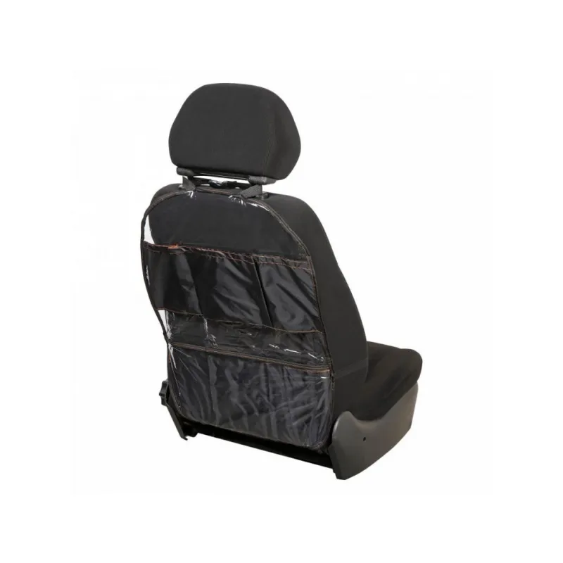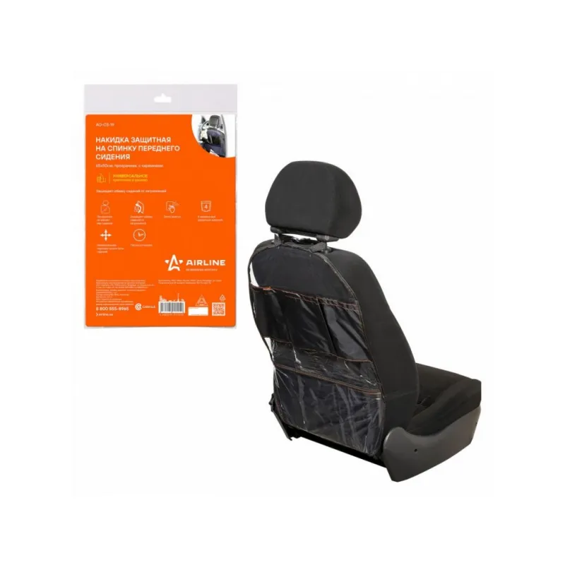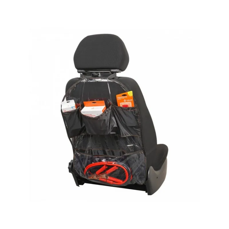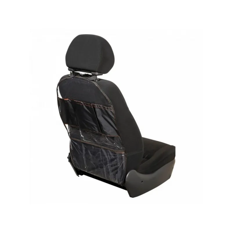 Накидка защитная на спинку переднего сиденья (65*50 см), ПВХ, прозрачная, с карманами Описание: Защитная накидка для сидений – самый доступный вариант для поддержания чистоты в салоне, особенно если у вас есть дети и животные. Данная модель препятствует загрязнению материала сидения от различных загрязнений (например, от следов детских ног, пролитых напитков и т.д.). Данная модель изготовлена из прозрачной пленки, что позволяет разместить изделие в любой машине независимо от цвета салона. Экономичное простое решение для поддержания чистоты в салоне автомобиля. Преимущества: -прозрачная, не меняет вид сиденья; -защищает обивку сидений от загрязнения; -легко моется, не требует особого ухода; -универсальная, подходит на все типы сидений; -имеет 4 кармана для различных мелочей; -легкая установка. Накидка на сидение автомобиля является необходимым аксессуаром для всех автомобилей. Накидка такого типа будет отличным подарком автовладельцу на 23 февраля, 8 марта, Новый год, мужчине, женщине, мужу, жене, парню, девушке. Характеристики: Артикул: AO-CS-19 Ширина, мм: 500 Длина, мм: 650 Толщина, мм: 0,1 Крепление: фастекс Место установки: подголовник Подкладка на обороте: нет Цвет: прозрачный/черный Карман: есть Спинка: да Светоотражательные элименты: нет Комплектация: Накидка - 1 шт ПЭ пакет - 1 шт Гарантия: от 1 года.