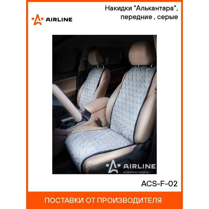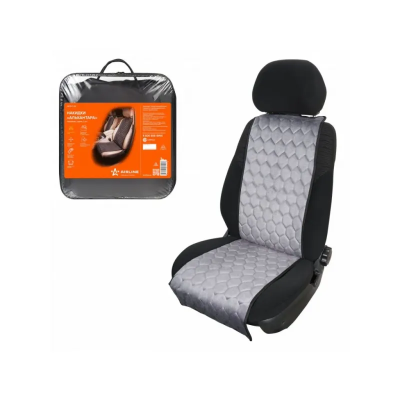 Накидки "Алькантара", передние (2 шт.), серые Описание: Комплект накидок на передние сиденья «Алькантара» ACS-F-02 бренда Airline – универсален и подходит практически для любой марки и модели автомобиля. Накидка на передние сиденья автомобиля изготовлены из износоустойчивой ворсовой мебельной ткани и защищают штатную обивку от истирания и выцветания. Автомобильная накидка на сидения идеально подходят к кожаному салону, обеспечивая комфортную температуру при контакте с сиденьем в холодную и жаркую погоду, а стеганый дизайн придает салону домашний комфорт и уют. Накидка в авто, благодаря своей форме, позволяет без затруднений надевать их на кресла любого типа, не прибегая к демонтажу подголовников и подлокотников, а также не препятствует раскрытию подушек безопасности. Преимущества: - износостойкая ворсовая ткань; - возможность применения на заднем сиденье; - защищает обивку автомобильных сидений от истирания; - универсальное крепление и размер, удобные застежки на направляющие подголовника; - нескользящая подкладка с ПВХ нанесением; - комфорт и уют в салоне; Накидка на сидение автомобиля является необходимым аксессуаром для всех автомобилей. Накидка такого типа будет отличным подарком автовладельцу на 23 февраля, 8 марта, Новый год, мужчине, женщине, мужу, жене, парню, девушке. Характеристики: Артикул: ACS-F-02 Длина спинки, мм: 750 Ширина спинки, мм: 340 Подкладка на обороте: смесовая ткань Толщина подложки, мм: 8 Размер: универсальный Рисунок (стёжка): сота Материал подложки: ВПЭ Вид крепления: резинки, фастексы Место установки: сиденье передние Цвет: серый Длина сидушки, мм: 750 Ширина сидушки, мм: 340 Комплектация: Накидка - 2 шт Сумка ПВХ - 1 шт Гарантия: от 1 года.