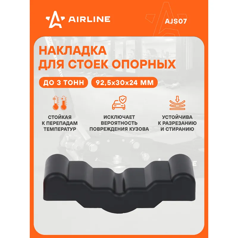 Накладка на стойку с зубчатым механизмом L92.5мм, W30мм, H24мм Описание: Накладка резиновая AIRLINE AJS07 предназначена для стоек опорных с зубч. мех. грузоподъемностью 2 и 3 тонны. Насадка устанавливается на чугунный шток, исключает вероятность повреждения кузова и предотвращает самопроизвольное соскальзывание. Изготовлена из высококачественной резины. Имеет хорошую стойкость к перепадам температуры, устойчива к разрезанию и стиранию. Быстро восстанавливается после снятия нагрузки. Преимущества: Состав - Резина; Износостойкость; Легкость установки; Надежная фиксация; Применяется со следующими продуктами: AJSGP02, AJSG02, AJSGP03, AJSG03. Характеристики: Артикул: AJS07 Комплектация: Накладка в пакете с навершием - 1 шт Гарантия: от 1 года.