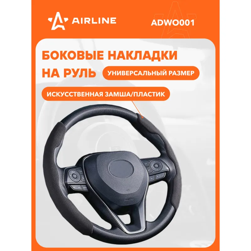 Накладки на руль, боковые, универсал., компл. 2 шт., замша/пластик, цвет черный Описание: Универсальная оплетка/накладки на руль ADWO001 бренда Airline — это отличный способ преобразить Ваш автомобиль и защитить руль от износа. Подходит для большинства моделей автомобилей и легко устанавливается на руль. Чехол на руль автомобиля обеспечивает хороший захват и комфортную поездку. Предотвращает скольжение рук и уменьшает усталость во время длительных поездок. Предназначены для защиты штатной обивки или покрытия руля от преждевременного износа и повреждений. А так же для более удобного хвата руля при вождении автомобиля. В комплекте идут полосы антискользящие с клеящим слоем для каждой боковой накладки. Преимущества: - состав: пластик, искусственная замша; - индивидуализирует интерьер авто; - удобный хват руля; - легкая установка; - универсальный размер; - приятные на ощупь; - не имеют неприятного запаха; - не проскальзывают при повороте руля; Оплетка на руль автомобиля является необходимым аксессуаром для всех автомобилей. Оплетка на руль/чехол на руль - это отличный подарок автовладельцу/водителю любого возраста на 23 февраля, 8 марта, Новый год, мужчине, женщине, мужу, жене, парню, девушке. Преобразите салон с помощью такого аксессуара. Характеристики: Артикул: ADWO001 Длина, мм: 385 Цвет прошивки: нет Цвет: черный Диаметр, см: 38 Размер: универсальный Форма рулевого колеса: круг Диаметр внутренний, мм: 34 Комплектация: Накладки - 2 шт Полоса антискользящая с клеящим слоем - 2 шт Коробка - 1 шт Гарантия: от 1 года.