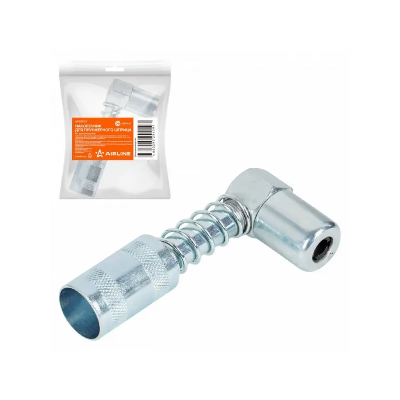 Наконечник-насадка для плунжерного шприца 90° Описание: Наконечник четырехлепестковый 90° быстросъемный для плунжерного шприца выполнен из высокопрочного металла. Предназначен для работы с пресс-масленками, установленными в труднодоступных местах. Имеет быстросъёмное соединение, то есть крепится к наконечнику шприца. Применяется с любыми типами нагнетателей смазки: плунжерных, рычажно-плунжерных и пневматических. Подходит для любых типов смазки. Характеристики: Артикул: ATGG503 Длина, мм: 130 Материал: Сталь Присоединительная резьба: нет Рабочее давление, атм: 410 Максимальное давление, aтм: 545 Комплектация: Наконечник четырехлепестковый 90° быстросъемный в пакете со стикером - 1 шт Гарантия: от 1 года.