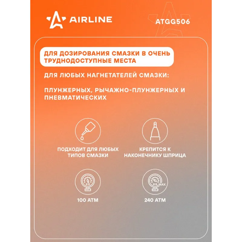 Наконечник-насадка для плунжерного шприца игольчатый 21мм Описание: Наконечник игольчатый 21мм быстросъемный для плунжерного шприца выполнен из высокопрочного металла. Используется для дозирования смазки в очень труднодоступные места. Имеет быстросъёмное соединение, то есть крепится к наконечнику шприца. Применяется с любыми типами нагнетателей смазки: плунжерных, рычажно-плунжерных и пневматических. Подходит для любых типов смазки. Характеристики: Артикул: ATGG506 Длина, мм: 21 Присоединительная резьба: нет Материал: Сталь Рабочее давление, атм: 100 Максимальное давление, aтм: 240 Комплектация: Наконечник игольчатый 21мм быстросъемный - 1 шт Гарантия: от 1 года.