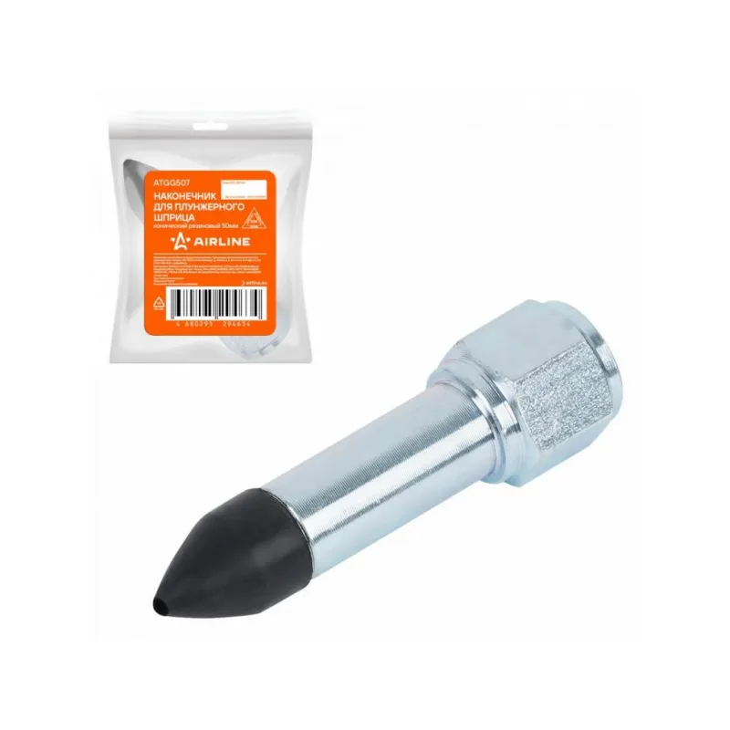 Наконечник-насадка для плунжерного шприца конический резиновый Описание: Наконечник конический резиновый для плунжерного шприца для воронкообразных и стандартных пресс-масленок. Выполнен из высокопрочного металла и износостойкой резины. С присоединительной резьбой NPT 1/8-27. Применяется с любыми типами нагнетателей смазки: плунжерных, рычажно-плунжерных и пневматических. Подходит для любых типов смазки. Характеристики: Артикул: ATGG507 Длина, мм: 30 Материал: Сталь Присоединительная резьба: NPT 1/8-27 Рабочее давление, атм: 240 Максимальное давление, aтм: 410 Комплектация: Наконечник прижимной в пакете со стикером - 1 шт Гарантия: от 1 года.