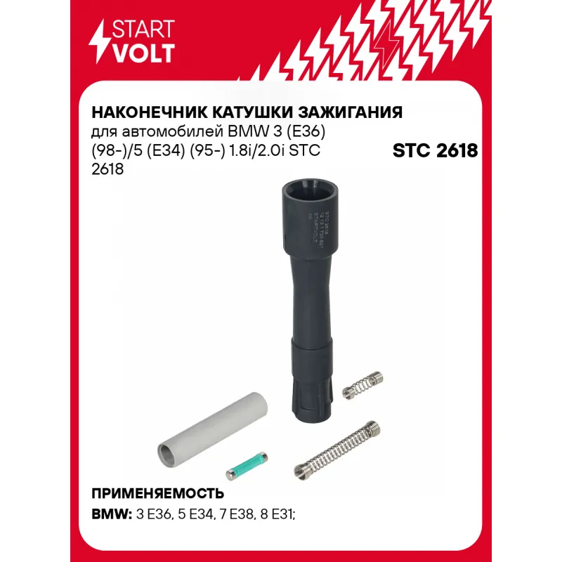 Наконечник катушки зажигания для автомобилей BMW 3 (Е36) (98-)/5 (Е34) (95-) 1.8i/2.0i Характеристики: Артикул: STC 2618 OEM номера: 12 13 1 730 521, 1 354 489 085, 12 13 1 740 477, 12 13 9 067 831, 1730412, 1730521, 1748018, 9067831, CP003 Материал изготовления: Силикон Количество на автомобиль: 4 Подходит для авто: BMW 3 E36 (90-), 5 E34 (88-), 7 E38 (94-), 8 E31 (89-) Для проверки применяемости отправьте VIN автомобиля через вкладку "Есть вопросы о товаре?" Комплектация: Паспорт изделия/гарантийный талон - 1 шт Наконечник катушки зажигания - 1 шт Пружина - 2 шт Резистор - 1 шт Высоковольтная трубка - 1 шт Гарантия: от 1 года.