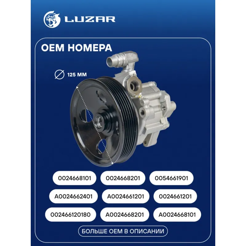 Насос ГУР для автомобилей Mercedes-Benz ML (W163) (98-)/E (W210) (95-) Характеристики: Артикул: LPS 1508 OEM номера: A0024662401, A0024661201, 0024661201, 002466120180, A0024668201, A0024668101, 0024668101, 0024668201, 0054661901, A002466380180, A002466810180, A0024663801, A0054661901, 0024662401, 0024663801 Количество на автомобиль: 1 Давление, Bar: 115 Диаметр шкива, мм: 125 Тип шкива: 6PK Направление вращения: По часовой стрелке Производительность, л/ч: 540 Подходит для авто: Mercedes-Benz C-Class W202 (93-), E-Class W210 (95-), M-Class I (W163) (97-), M-Class I (W163) (97-) Для проверки применяемости отправьте VIN автомобиля через вкладку "Есть вопросы о товаре?" Комплектация: Насос гидроусилителя Паспорт изделия Гарантия: от 1 года.