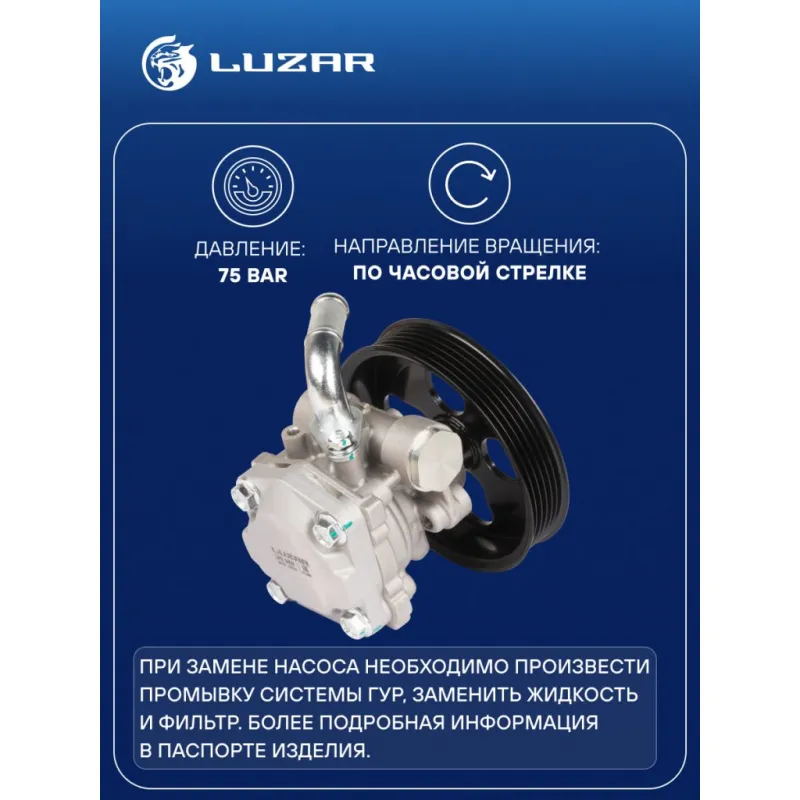 Насос ГУР для автомобилей Suzuki Grand Vitara (05-) 2.4i Характеристики: Артикул: LPS 2402 OEM номера: 49100-78K00 Количество на автомобиль: 1 Давление, Bar: 75 Диаметр шкива, мм: 121 Тип шкива: 6PK Направление вращения: По часовой стрелке Производительность, л/ч: 450 Комплектация: Насос гидроусилителя Паспорт изделия Гарантия: от 1 года.