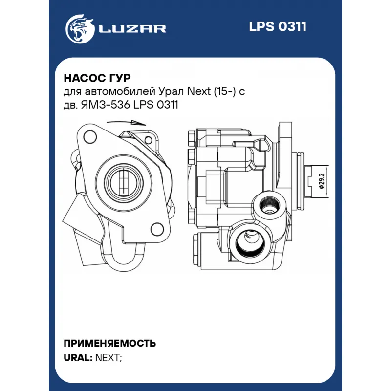 Насос ГУР для автомобилей Урал Next (15-) c дв. ЯМЗ-536 Характеристики: Артикул: LPS 0311 OEM номера: 536.3407010, 536.34070 Производительность, л/ч: 690 Направление вращения: по часовой стрелке Тип шкива: - Давление, Bar: 185 Диаметр шкива, мм: - Количество на автомобиль: 1 Комплектация: Насос гидроусилителя Паспорт изделия Гарантия: от 1 года.