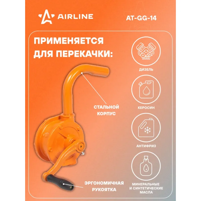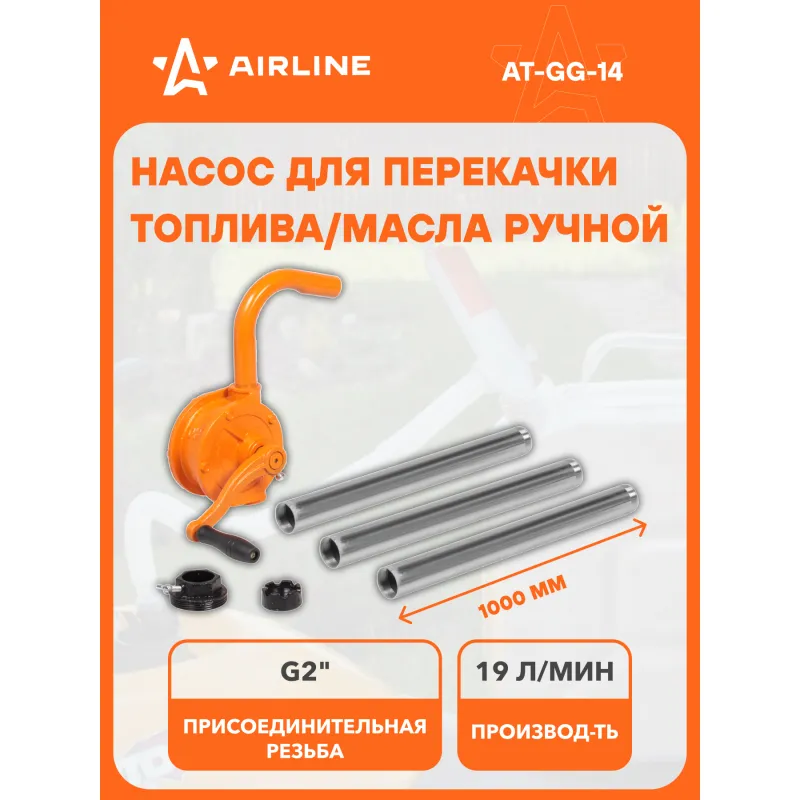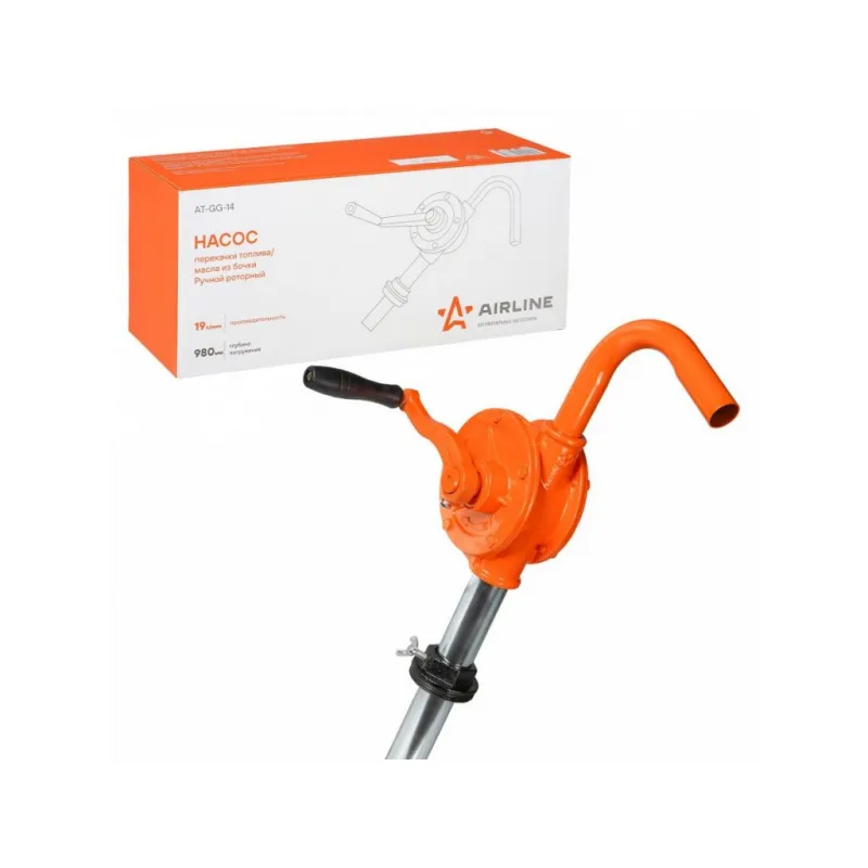 Насос перекачки топлива/масла из бочки ручной роторный Описание: Ручной насос для перекачки топлива, масел и технических жидкостей AT-GG-14 от бренда AIRLINE - изготовлен из стали. Механический насос автомобильный роторный - разработан для перекачивания из стандартных бочек различных технических жидкостей, таких как: дизельное топливо/дизель, керосин, минеральные и синтетические масла, концентраты охлаждающих жидкостей и др. Подходит для перекачки и замены масла. Производительность - 19 л/мин. Длина всасывающей трубы - 1000 мм. Возможно применение насоса для откачки масла в транспортных средствах: мотоциклы, автомобили, квадроциклы, лодки, а также в промышленном/медицинском оборудовании. НЕ РЕКОМЕНДУЕТСЯ применять насос для ГСМ для перекачивания воды, жидкостей на её основе, а также сильных кислот и других агрессивных жидкостей. Характеристики: Артикул: AT-GG-14 OEM номера: 42035 Длина всасывающей трубы, мм: 1000 Присоединительная резьба: G2" Производительность, л/мин: 19 Диаметр ротора, мм: 120 Комплектация: Насос - 1 шт Рукоятка насоса - 1 шт Труба подающая из 3х частей - 1 шт Муфта - 2 шт Гарантия: от 1 года.