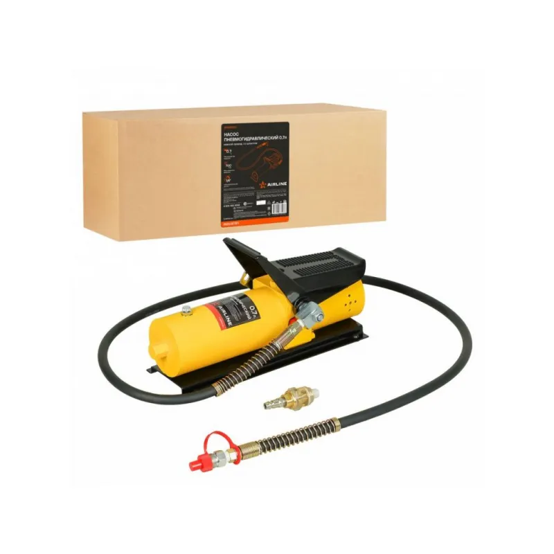 Насос пневмогидравлический 0.7л, ножной привод, шланг 1.5м Описание: Пневмогидравлический насос APMPD01 является универсальным инструментом, который производит давление для различного гидравлического оборудования. Насос выполнен из высокопрочной стали и снабжен предохранительным клапаном, который предотвращает перегрузы. Объём рабочей жидкости составляет 0.69л. Длинна рукава высокого давления составляет 1.5 м и имеет диаметр 15 мм. В комплекте также идет быстроразъемное соединение с резьбой 3/8. Насос применим для работ с гидравлическими цилиндрами прямого и обратного действия в гидравлических гаражных прессах и кранах, стяжках пружин подвески автомобилей, наборах гидравлических растяжек для кузовного ремонта. Давление масла 700бар Скорость потока масла на выходе из насоса (без нагрузки): 0.4л/мин Скорость потока масла на выходе из насоса (под нагрузкой): 0.12л/мин Характеристики: Артикул: APMPD01 Объем рабочей жидкости, л: 0.7 Присоединительная резьба: 3/8 Max давление, бар: 700 Комплектация: Насос пневмогидравлический - 1 шт Шланг соединительный - 1 шт Лубрикатор 1\4-Rapid - 1 шт Паспорт изделия - 1 шт Гарантийный талон - 1 шт Коробка - 1 шт Гарантия: от 1 года.