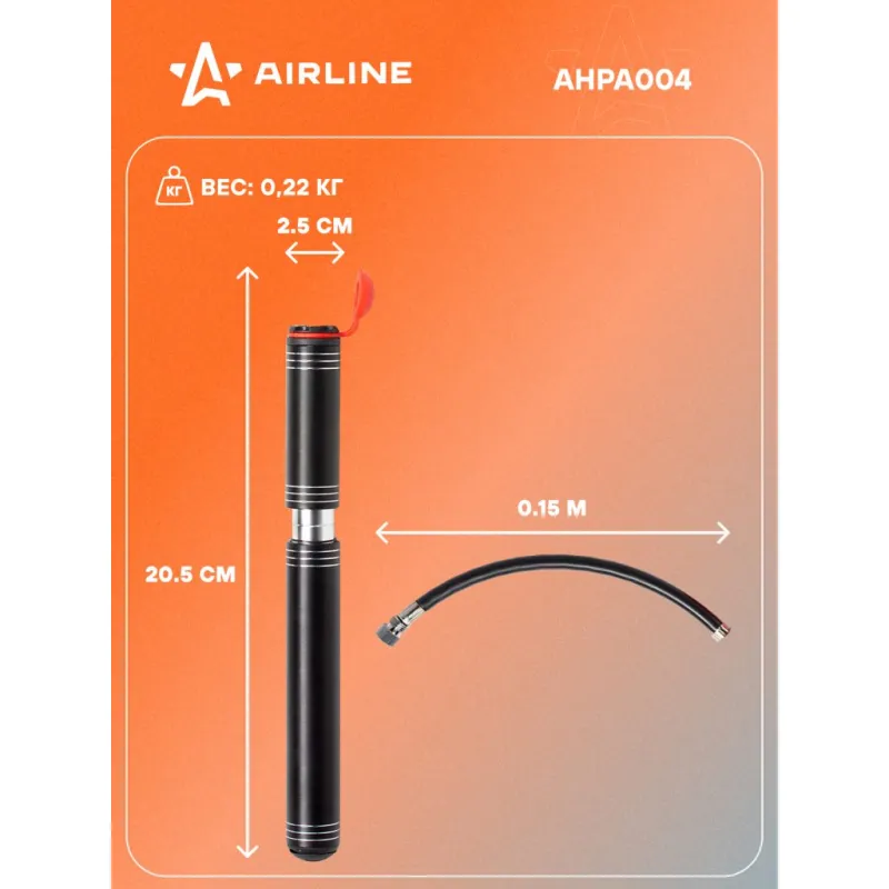 Насос велосипедный цельнометаллический Описание: Компактный цельнометаллический насос AIRLINE AHPA004 с креплением к раме велосипеда. Подходит для автомобильных (Schrader) и велосипедных (Presta) ниппелей. Шланг спрятан в ручке под красной крышкой, для извлечения из места хранения, необходимо выкрутить его. Продается высококачественный велосипедный насос, который станет незаменимым аксессуаром для любого велосипедиста. Этот компактный и портативный насос легко поместится в вашем рюкзаке или кармане, готовый прийти на помощь в случае прокола шины или необходимости подкачать воздух в колесах. Велосипедный насос классического типа, привычная форма и надежность. Этот ручной насос подойдет для накачки не только велосипедных колес, а также для накачки мяча, детскую и инвалидную коляску, тачку, мопед, мотоцикл, воздушные шары, батут, футбольный, волейбольный, баскетбольный мяч. Насос для накачки велосипедных шин - это необходимая вещь и будет хорошим подарком владельцу велосипеда, для вашего мужчины или друга на 23 февраля, 8 марта, новый год, так как насос может выручить в непредвиденной ситуации. В линейке AIRLINE, вы найдете широкий ассортимент высококачественных автотоваров и средств по уходу за вашим автомобилем, инструменты для авто, велосипедов, насосы ручные, ножные, механические, компрессоры. Мы гарантируем качество и надежность наших товаров. Характеристики: Артикул: AHPA004 Манометр: Нет Длина шланга, м: 0,15 Максимальное давление, Атм (кг/см2): 8 Тип: Механический Комплектация: Насос ручной - 1 шт Картонная подложка - 1 шт Гарантия: от 1 года.