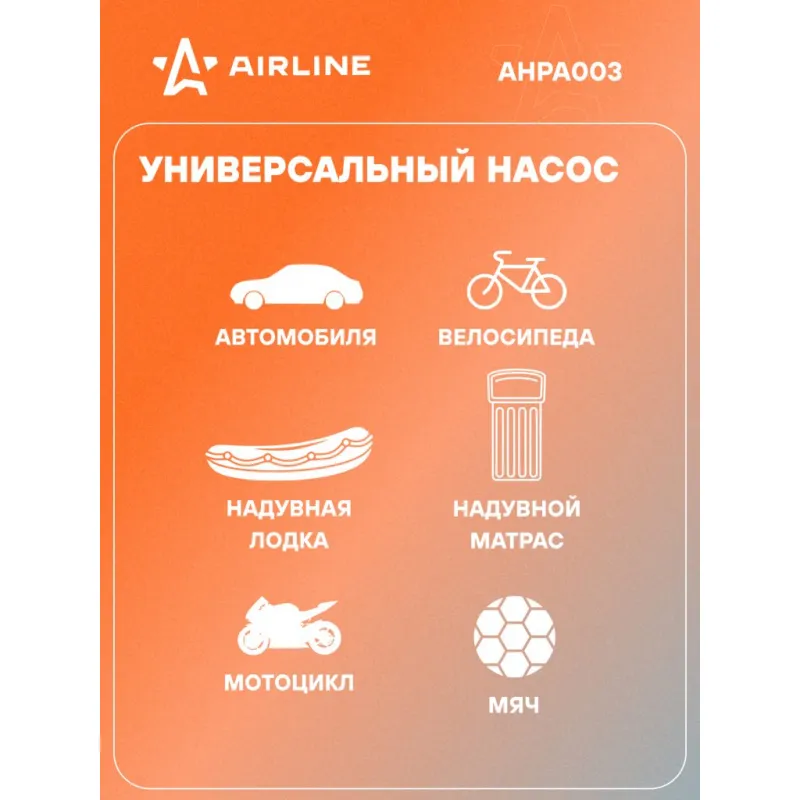 Насос велосипедный USSR Описание: Компактный насос AIRLINE AHPA003 с креплением к раме велосипеда. Продается высококачественный велосипедный насос, который станет незаменимым аксессуаром для любого велосипедиста. Этот компактный и портативный насос легко поместится в вашем рюкзаке или кармане, готовый прийти на помощь в случае прокола шины или необходимости подкачать воздух в колесах. Велосипедный насос классического типа, привычная форма и надежность , главные составляющие данного товара. Насос оснащен шлангом с насадкой для велосипедных ниппелей (Presta) и шлангом 15 см. Этот ручной насос подойдет для накачки не только велосипедных колес, а также для накачки мяча, детскую и инвалидную коляску, тачку, мопед, мотоцикл, воздушные шары, батут, футбольный, волейбольный, баскетбольный мяч. Насос для накачки велосипедных шин - это необходимая вещь и будет хорошим подарком владельцу велосипеда, для вашего мужчины или друга на 23 февраля, 8 марта, новый год, так как насос может выручить в непредвиденной ситуации. В линейке AIRLINE, вы найдете широкий ассортимент высококачественных автотоваров и средств по уходу за вашим автомобилем, инструменты для авто, велосипедов, насосы ручные, ножные, механические, компрессоры. Мы гарантируем качество и надежность наших товаров. Характеристики: Артикул: AHPA003 Манометр: Нет Длина шланга, м: 0,15 Максимальное давление, Атм (кг/см2): 5 Тип: Механический Комплектация: Насос ручной - 1 шт Картонная подложка - 1 шт Гарантия: от 1 года.