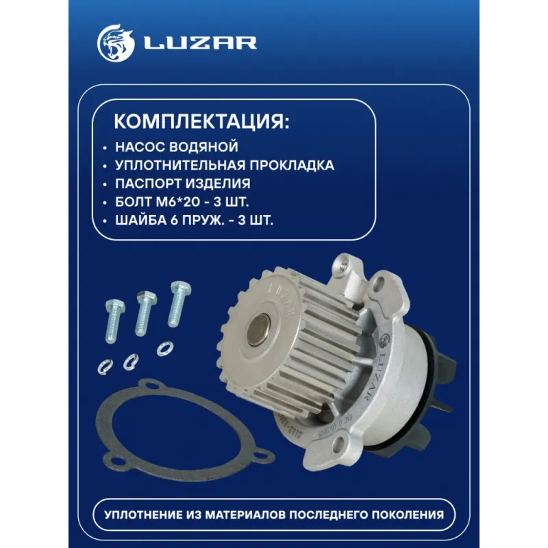 Насос водяной для а/м Лада 2112 PPS-крыльчатка Описание: Водяной насос LWP 0132 бренда Luzar, или помпа, – это компонент системы охлаждения двигателя внутреннего сгорания, который обеспечивает циркуляцию охлаждающей жидкости (антифриза) по системе для отвода тепла от двигателя и предотвращения его перегрева. Предназначен для автомобилей: - Lada ВАЗ 2110-2112 2110 16V 2112 (1995 - 2010); - Lada ВАЗ 2110-2112 2110 21124 (2000 - 2008); - Lada ВАЗ 2110-2112 2110 16V 21124 (2004 - 2010); Подбор по VIN-номеру вашего автомобиля - через кнопку 'Задать вопрос'. Специалист проверит применяемость и ответит вам. Преимущества: • Производство сертифицировано по международным стандартам менеджмента качества; • Контроль качества на каждом этапе производства; • 100% проверка на герметичность; • Прошло стендовые и ресурсные испытания в собственной лаборатории; • Уплотнения из материалов последнего поколения; • Полное соответствие OEM. Характеристики: Артикул: LWP 0132 OEM номера: 2112-1307010, 21120-1307010-00, 21120130701082 Трансмиссия: Механическая коробка передач Кондиционер: - Материал крыльчатки: Керамический пластик PPS Комплектация: Насос водяной Уплотнительная прокладка Паспорт изделия Болт М6*20 - 3 шт Шайба 6 пруж. - 3 шт Гарантия: от 1 года.