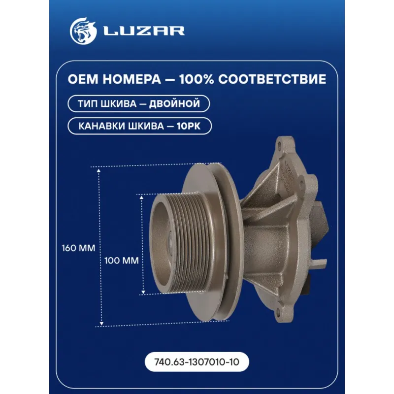 Насос водяной для автомобилей КАМАЗ 740.63 Евро-3 A/C (двойной шкив 100мм/160мм, 10PK) Характеристики: Артикул: LWP 07464 OEM номера: 740.63-1307010-10 Трансмиссия: MT Материал крыльчатки: Чугун Кондиционер: + Тип шкива: двойной Диаметр шкива, мм: 100/160 Количество канавок шкива, шт.: 10PK Подходит для авто: КамаАЗ 65201, 6522, 65221, 65222, 6460, 6520 Для проверки применяемости отправьте VIN автомобиля через вкладку "Есть вопросы о товаре?" Комплектация: Насос водяной Уплотнительная прокладка Паспорт изделия Гарантия: от 1 года.