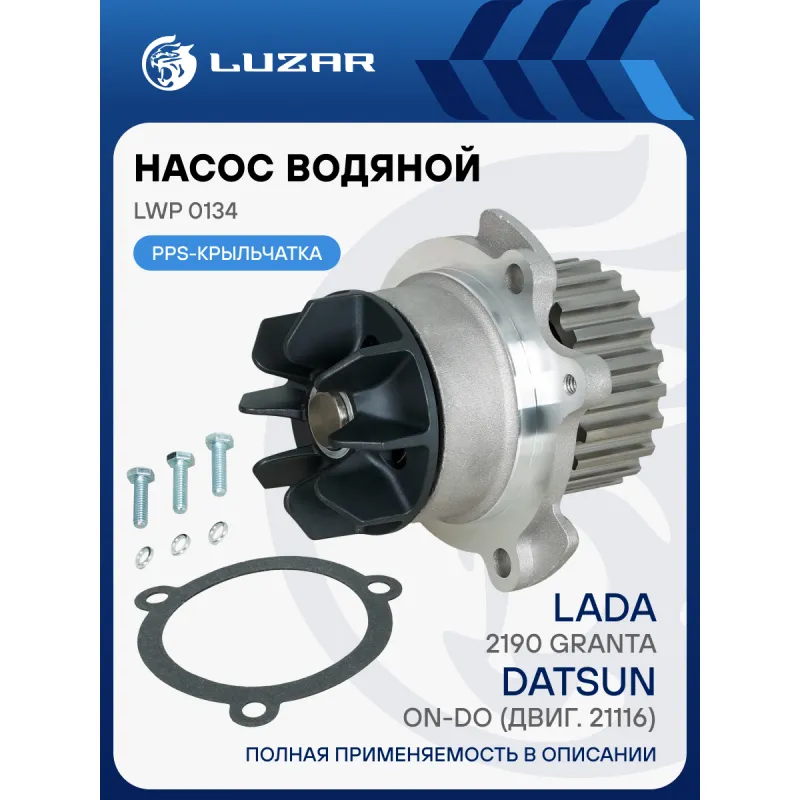 Насос водяной для автомобилей Лада 2190 Гранта/Datsun on-Do (двиг. 21116) PPS-крыльчатка Описание: Водяной насос LWP 0134 бренда Luzar, или помпа, – это компонент системы охлаждения двигателя внутреннего сгорания, который обеспечивает циркуляцию охлаждающей жидкости (антифриза) по системе для отвода тепла от двигателя и предотвращения его перегрева. Предназначен для автомобилей: - Datsun mi-DO (HBD0, HBD0R) 16LW, 16LW8V (2014 - 2017); - Datsun on-DO (BD0) 16HW / 16LW, 16LW8V (2014 - 2017); - Lada Granta (21901) 11186 (2011 - н.в.); - Lada Granta (21904) (2021 - н.в.); - Lada Kalina 1119 VAZ-11186 (2004 - 2013); - Lada Largus (KS035, RS035) 2016 - н.в. Подбор по VIN-номеру вашего автомобиля - через кнопку 'Задать вопрос'. Специалист проверит применяемость и ответит вам. Преимущества: • Производство сертифицировано по международным стандартам менеджмента качества; • Контроль качества на каждом этапе производства; • 100% проверка на герметичность; • Прошло стендовые и ресурсные испытания в собственной лаборатории; • Уплотнения из материалов последнего поколения; • Полное соответствие OEM. Характеристики: Артикул: LWP 0134 OEM номера: 21090-1307010, 21090-130701082, 21090130701000, 21090130701081, 21116-1307010, 21116-130701010, 21116130701000, 21116130701075, 21116130701082, 21010-5PA0A, 21010-5PA0E Трансмиссия: Механическая коробка передач Кондиционер: +/- Материал крыльчатки: Керамический пластик PPS Комплектация: Насос водяной Уплотнительная прокладка Паспорт изделия Болт М6*20 - 3 шт шайба пруж. - 3 шт Гарантия: от 1 года.