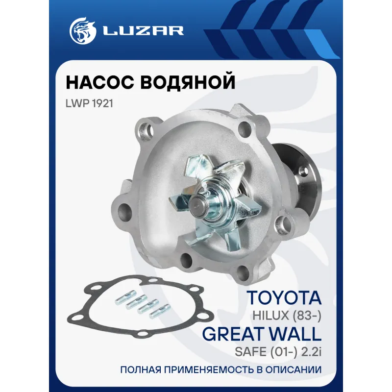 Насос водяной для автомобилей Toyota Hilux (83-) 1.8i/2.0i/2.2i/Great Wall Safe (01-) 2.2i Характеристики: Артикул: LWP 1921 OEM номера: 1610079036, 1610079037, 1610079035, 1610079275, J1610079036, J1610079037, 1307020E00, 1307020E00A1, 1610076036, 1307020E00AH Трансмиссия: MT/AT Материал крыльчатки: Листовая сталь Кондиционер: +/- Сопутствующий товар: Термостаты: LT 0825 Двигатель: 2Y, 3Y, 4Y Подходит для авто: Great Wall Deer (96-), Sailor (05-), Safe (01-) Toyota Lite Ace (92-), Hilux (89-) Для проверки применяемости отправьте VIN автомобиля через вкладку "Есть вопросы о товаре?" Комплектация: Водяной насос Уплотнительная прокладка Паспорт изделия Гарантия: от 1 года.