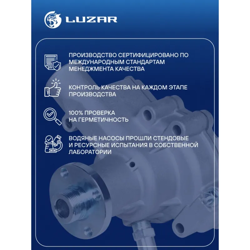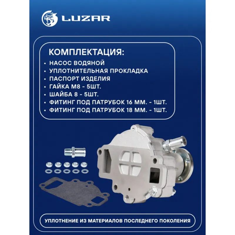 Насос водяной для автомобилей УАЗ 3160 (421) Характеристики: Артикул: LWP 0321 OEM номера: 421-1307010, 421-1307010-01 Трансмиссия: MT Материал крыльчатки: Листовая сталь Кондиционер: - Комплектация:: В комплекте два фитинга под патрубки 16мм. и 18мм. Подходит для авто: ГАЗ 3302, 2217, 2752, 2705, 3221 УАЗ 3160 (97-), 3151 (85-), 3303, 3741, 3909, 3962, Patriot (97-), Hunter (УАЗ-315195) (03-) Для проверки применяемости отправьте VIN автомобиля через вкладку "Есть вопросы о товаре?" Комплектация: Насос водяной Уплотнительная прокладка Паспорт изделия Гайка М8 - 5 шт Шайба 8 - 5 шт Фитинг под патрубок 16 мм. - 1 шт Фитинг под патрубок 18 мм. - 1 шт Гарантия: от 1 года.
