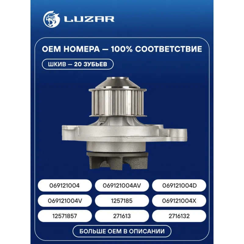 Насос водяной для автомобилей VW LT (78-) 2.4D Характеристики: Артикул: LWP 1847 OEM номера: 1257185, 12571857, 271613, 2716132, 069121004, 069121004AV, 069121004D, 069121004V, 069121004X, 046121004, 046121004V, 046121004X, 069121005D Трансмиссия: MT/AT Кондиционер: +/- Материал крыльчатки: Чугун Сопутствующий товар: Термостаты: LT 1835 Двигатель: 1G, 1S, 1T, CN, CP, DE, DV, DW, KU, NC, D24, D24T Шкив: 20 зуб. Подходит для авто: Audi 100 (90-), 100 (82-) Для проверки применяемости отправьте VIN автомобиля через вкладку "Есть вопросы о товаре?" Комплектация: Насос водяной Уплотнительная прокладка Паспорт изделия Гарантия: от 1 года.