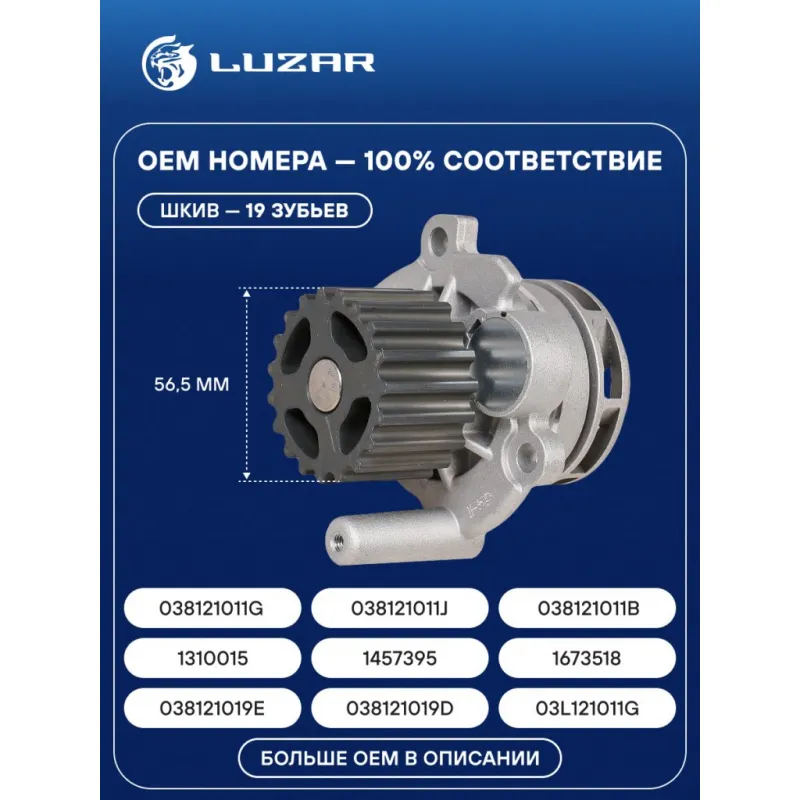 Насос водяной для автомобилей VW Passat B5 (96-)/Passat B6 (05-) 1.9TDi/2.0TDi Характеристики: Артикул: LWP 1843 OEM номера: 038121011G, 038121011J, 038121011B, 1310015, 1457395, 1673518, 038121019E, 038121019D, 03L121011G, 03L121011GX, 038121011C, 038121011CX, 038121011D, 038121011H, 038121011K, 03G121011, 03G121011X, 03L121011B, 03L121011BX Трансмиссия: MT/AT Материал крыльчатки: Алюминиевый сплав Кондиционер: +/- Сопутствующий товар: Термостаты: LT 1800 Двигатель: 1Z,AHU,AJM,ANU,ARL,ASZ,ATD,ATJ,AUY,AVB,AVF,AWX,AXR,AZV,BAM,BAU,BDH,BEE,BEW,BGW,BHW,BKD,BKE,BKP,BLB,BMA,BMM,BMN,BMP,BNA,BPW,BPZ,BRB,BRC,BRD,BRE,BRF,BRT,BSS,BSV,BSW,BUY,BUZ,BVB,BVE,BVF,BVG,BVH,BVK,BWV,BWW,CAGA,CAGB,CAGC,CAHA,CAHB,CBAA,CBAB,CBAC,CBBA,CBBB,CBDA,CBDB,CBDC,CEGA,CFFA,CFFB,CFGB,CJAA,CJCA,CLJA,CMEA,CMFA Диаметр крыльчатки, мм: 64 Кол-во лопастей крыльчатки: 7 Шкив: 19 зуб. Диаметр шкива, мм: 56,5 Подходит для авто: Volkswagen Jetta (05-), Passat B6 (05-), Passat B5 (96-), Passat CC (08-), Sharan (95-), Scirocco (08-), Tiguan (08-), Golf V (03-), Golf IV (97-), Bora (99-), Golf VI (08-) Audi A4 B7 (04-), A6 C6 (04-), A4 (97-), A5 (07-), A6 C4 (94-), A3 (96-), A3 (03-) Skoda Octavia A5 (04-), Superb I (01-), Superb II (08-), Octavia (96-) Ford Galaxy I (95-) Seat Leon (99-), Leon (05-) Для проверки применяемости отправьте VIN автомобиля через вкладку "Есть вопросы о товаре?" Комплектация: Насос водяной Уплотнительная прокладка Паспорт изделия Гарантия: от 1 года.