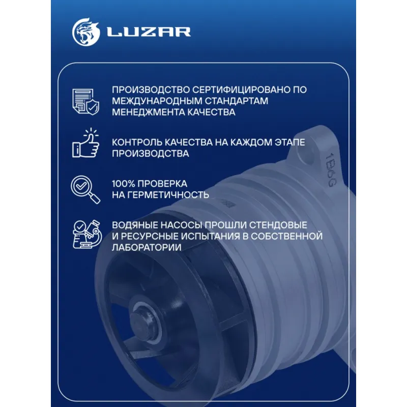 Насос водяной для автомобилей VW Transporter T5 (03-) 2.5TDI Характеристики: Артикул: LWP 1829 OEM номера: 070121011DV, 070121011D, 070121011DX, 070121011C, 070121011A Трансмиссия: MT/AT Материал крыльчатки: Керамический пластик PPS Кондиционер: +/- Сопутствующий товар: Термостаты: LT 1855 Двигатель: AXD, AXE, BAC, BLJ, BLK, BNZ, BPC, BPD, BPE Подходит для авто: Volkswagen Multivan (03-), Touareg (02-), Transporter T5 (03-) Для проверки применяемости отправьте VIN автомобиля через вкладку "Есть вопросы о товаре?" Комплектация: Насос водяной Уплотнительная прокладка Паспорт изделия Гарантия: от 1 года.