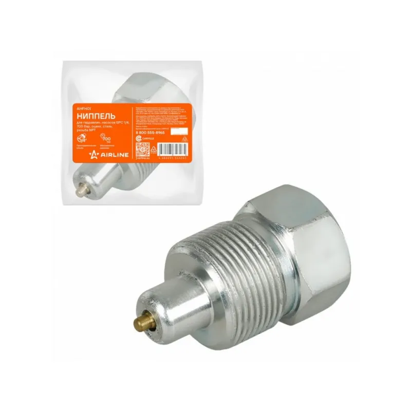 Ниппель для гидравлич. насосов БРС 1/4, 700 бар, оцинк. сталь, резьба NPT Описание: Ниппель быстроразъемный AIRLINE AHFH01 используется для резьбового соединения шланга AHQRC01 диаметром 1/4 дюйма и насосами APM01, APM02 для обеспечения легкого и надежного крепления. Выполнен из высокопрочной оцинкованной стали. Характеристики: Артикул: AHFH01 Присоединительная резьба: 1/4 Max давление, бар: 700 Комплектация: Ниппель - 1 шт Колпачок защитный - 1 шт Пакет с наклейкой - 1 шт Гарантия: от 1 года.