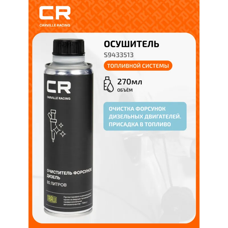 Очиститель дизельных форсунок, 270мл Описание: Присадка в дизельное топливо для очистки форсунок двигателей от отложений и комплексного ухода за топливной системой. Восстанавливает геометрию факела форсунки и улучшает сгорание топлива, стабилизирует работу двигателя, увеличивает мощность. Повышает смазывающие свойства дизельного топлива и уменьшает износ топливного оборудования, продлевая его ресурс. Улучшает проходимость топливных магистралей и защищает от коррозии. Повышает цетановое число дизельного топлива. Совместима с другими присадками для дизельного топлива. Наибольший эффект достигается при регулярном использовании и соблюдении дозировки. Характеристики: Артикул: S9433513 Дозировка: 1 флакон для обработки до 80 литров топлива Состав: Алифатические углеводороды >30%, ароматические углеводороды