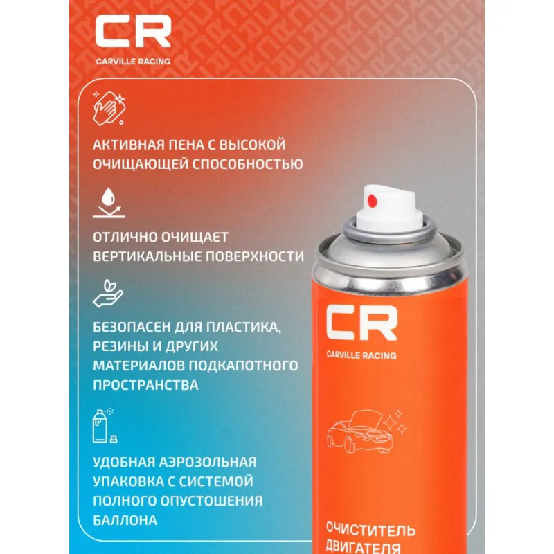 Активная пена с высокой очищающей способностью. Удаляет стойкие загрязнения: масляные отложения, технические жидкости, реагенты и дорожную грязь. Отлично очищает вертикальные поверхности. Безопасен для пластика, резины и других материалов подкапотного пространства. Удобная аэрозольная упаковка с системой полного опустошения баллона.