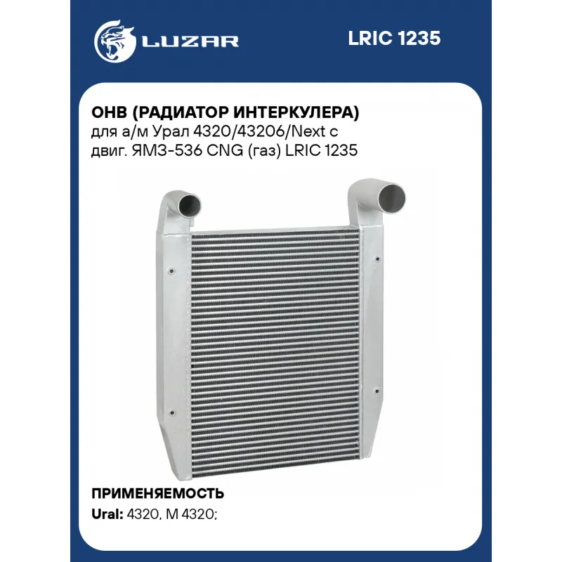 ОНВ (радиатор интеркулера) для а/м Урал 4320/43206/Next с двиг. ЯМЗ-536 CNG (газ) Характеристики: Артикул: LRIC 1235 OEM номера: 4320БГ-1172010, 4320BG-1172010 Трансмиссия: MT Кондиционер: +/- Материал бачков: алюминий Сопутствующий товар: Радиаторы охлаждения: LRc 1237 Длина сердцевины, мм: 518 Толщина сердцевины, мм: 62 Высота сердцевины, мм: 716 Сопутствующий товар: Турбокомпрессор: LAT 1256 Материал сердцевины: алюминий Тип сердцевины: паяная Примечание: патрубки разного димаетра - 68мм и 90мм Подходит для авто: Ural 4320, M 4320 Для проверки применяемости отправьте VIN автомобиля через вкладку "Есть вопросы о товаре?" Комплектация: Радиатор интеркулера - 1 шт Паспорт изделия - 1 шт Гарантия: от 1 года.