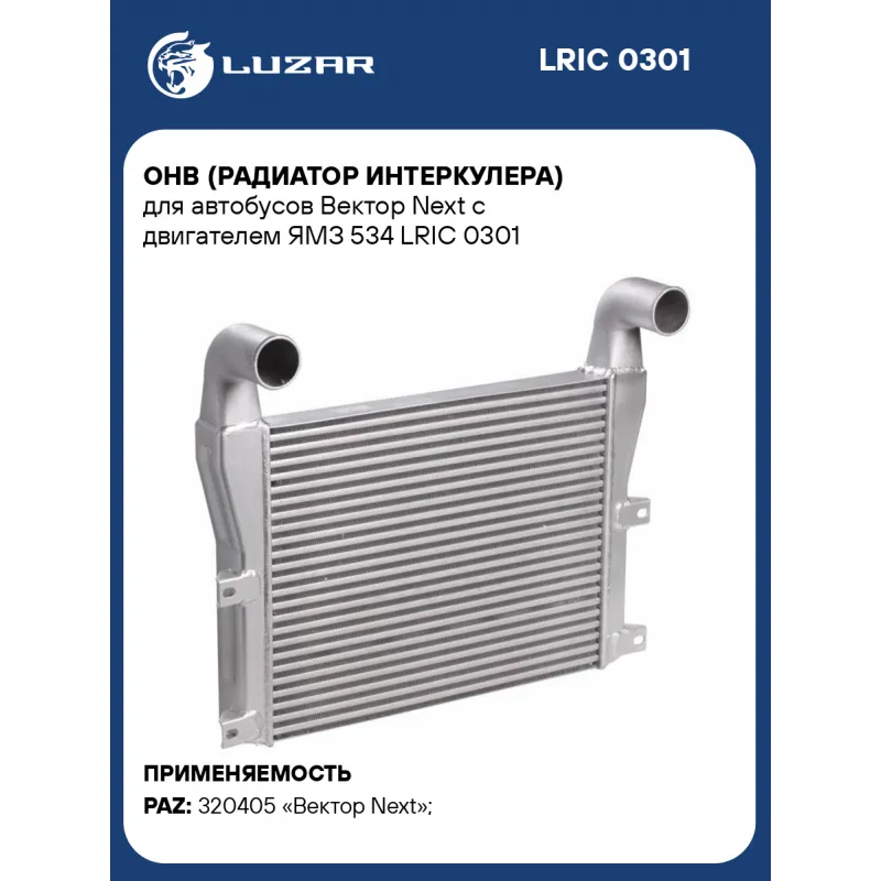 ОНВ (радиатор интеркулера) для автобусов Вектор Next с двигателем ЯМЗ 534 Характеристики: Артикул: LRIC 0301 OEM номера: C40R13-1172012, С40R13A-1172010 Трансмиссия: MT Кондиционер: +/- Длина сердцевины, мм: 575 Высота сердцевины, мм: 428 Толщина сердцевины, мм: 62 Материал сердцевины: алюминий Тип сердцевины: паяная Подходит для авто: ПАЗ 320405 «Вектор Next» Для проверки применяемости отправьте VIN автомобиля через вкладку "Есть вопросы о товаре?" Комплектация: Радиатор интеркулера Паспорт изделия Гарантия: от 1 года.