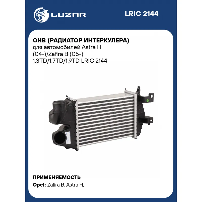 ОНВ (радиатор интеркулера) для автомобилей Astra H (04-)/Zafira B (05-) 1.3TD/1.7TD/1.9TD Характеристики: Артикул: LRIC 2144 OEM номера: 6302 072, 6302 076, 13213402, 93187214 Трансмиссия: MT/AT Кондиционер: +/- Длина сердцевины, мм: 262 Высота сердцевины, мм: 181.5 Толщина сердцевины, мм: 62 Материал сердцевины: алюминий Материал бачков: пластик Тип сердцевины: паяная Сопутствующий товар: Радиаторы охлаждения: LRc 21165; LRc 21185; LRc 2166 Подходит для авто: Opel Zafira B (05-), Astra H (04-) Для проверки применяемости отправьте VIN автомобиля через вкладку "Есть вопросы о товаре?" Комплектация: Радиатор интеркулера Паспорт изделия Гарантия: от 1 года.