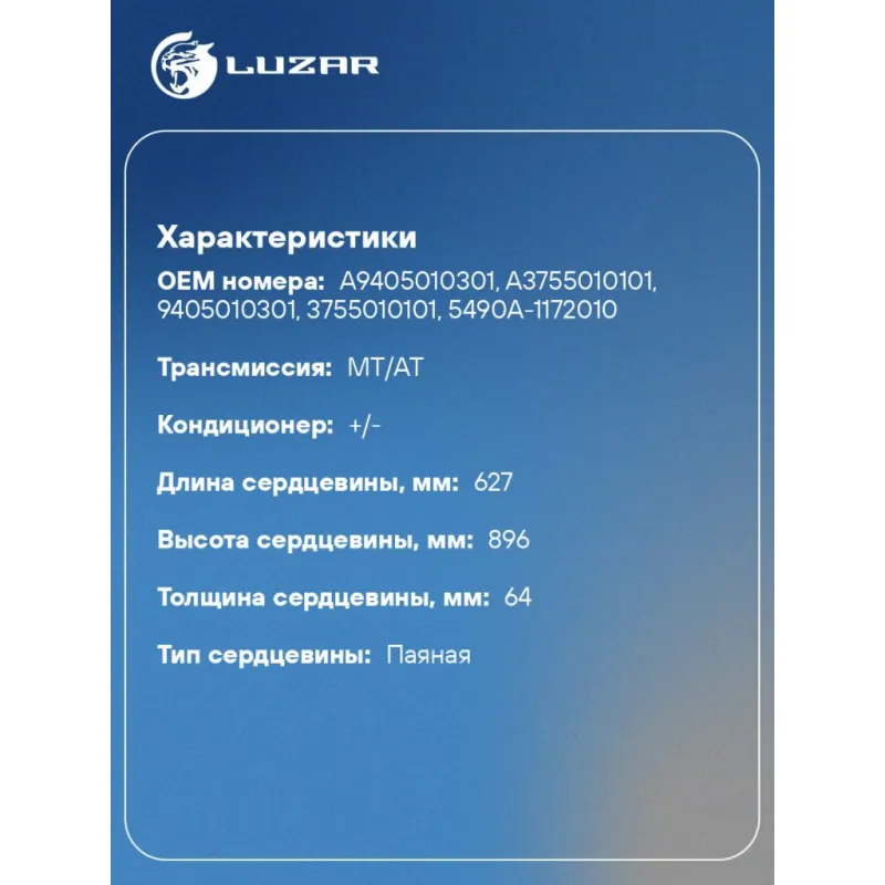 | Сопутствующий товар: Радиаторы охлаждения | LRc 15703 |