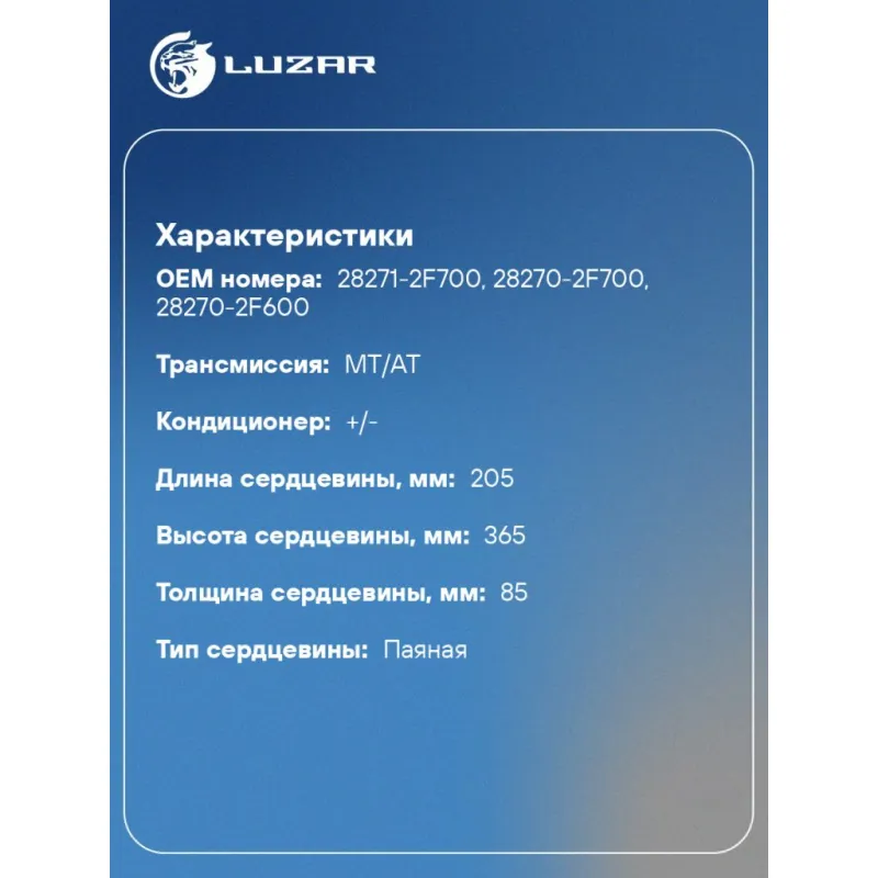 | Сопутствующий товар: Радиаторы охлаждения | LRc 08123; LRc 081P3; LRc 08P1 |