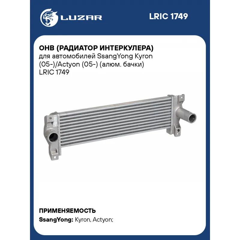 ОНВ (радиатор интеркулера) для автомобилей SsangYong Kyron (05-)/Actyon (05-) (алюм. бачки) Характеристики: Артикул: LRIC 1749 OEM номера: 23711-09050, 23711-09060, 23710-32000 Трансмиссия: MT/AT Кондиционер: +/- Длина сердцевины, мм: 616 Высота сердцевины, мм: 163.6 Толщина сердцевины, мм: 30 Материал сердцевины: алюминий Материал бачков: алюминий Тип сердцевины: паяная Сопутствующий товар: Радиаторы охлаждения: LRc 1750; LRc 17130; LRc 17131 Подходит для авто: SsangYong Kyron (05-), Actyon (05-) Для проверки применяемости отправьте VIN автомобиля через вкладку "Есть вопросы о товаре?" Комплектация: Радиатор интеркулера Паспорт изделия Гарантия: от 1 года.